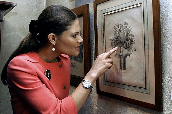 Франція, По. Наслідна принцеса Швеції Вікторія роздивляється гравюру під час візиту до музею Бернадотта. Кронпринцеса Швеції з чоловіком перебуває у Франції з офіційним візитом. / © AFP