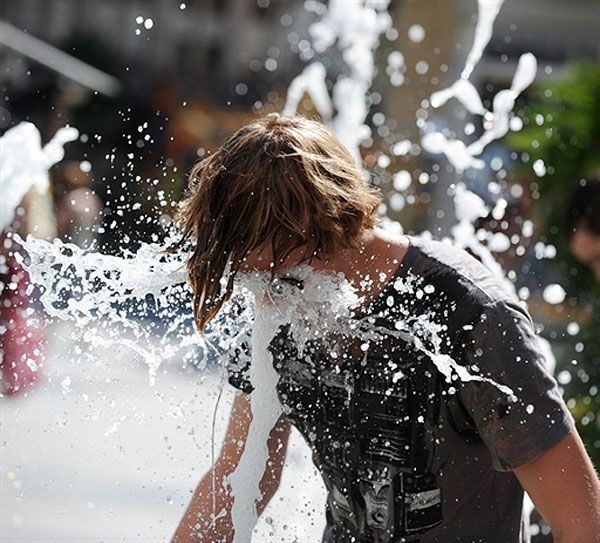 США, Лос-Анджелес. 18-річний Кейсі Єль охолоджується у фонтані голлівудського комплексу Хайленд у Лос-Анджелесі. Денна температура у місті досягла 45 градусів за Цельсієм. / © AFP