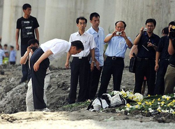 Китай, Веньчжоу. Прем'єр-міністр Держради КНР Вень Цзябао вшанував пам’ять жертв високошвидкісної залізничної катастрофи, яка сталася на сході Китаю. Вень Цзябао пообіцяв "суворо покарати" винних у аварії поїзда, в результаті якої загинули 39 осіб. / © AFP