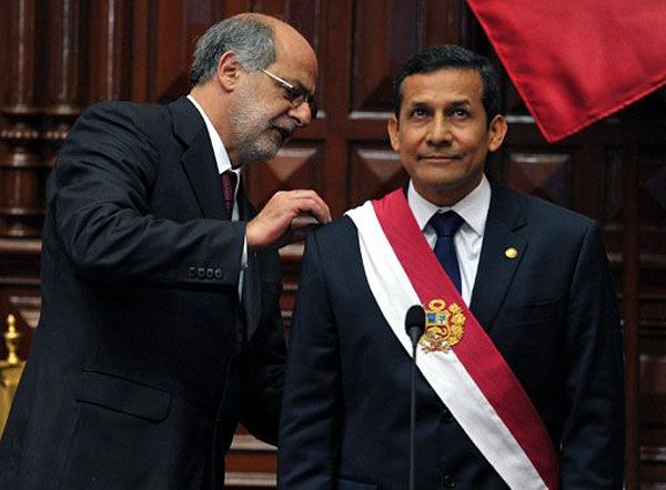 Перу, Ліма. Новообраний президент країни Ольянта Хумана отримує президентський пояс від голови Конгресу Даніеля Абугаттаса під час присяги в Лімі. Ольянта Хумана пообіцяв боротися з високим рівнем бідності та забезпечити стале економічне зростання в країні. / © AFP