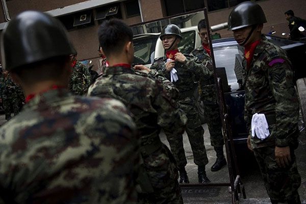 Таїланд, Бангкок. Тайський солдат приводить до ладу свою форму перед церемонією присяги новопризначеному керівнику тайської армії генералу Праюту Чан-O-Ча у штаб-квартирі тайської армії у Бангкоку. / © AFP