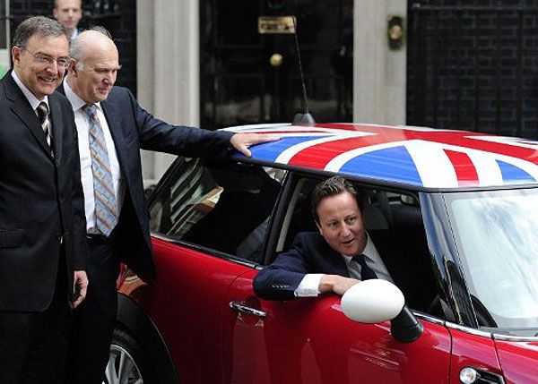 Великобританія, Лондон. Прем'єр-міністр Великобританії Девід Кемерон сідає у автомобіль Mini під час фотосесії поблизу Даунінг-стріт, 10, в центрі Лондона. Німецький автовиробник BMW заявив, що планує створити новий модельний ряд Mini та налагодити виробництво Mini у Великобританії. / © AFP