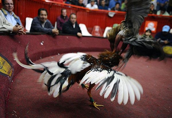 Еквадор, Кіто. Бійцівські півні виступають на арені Los Revuelos на околиці міста Кіто. Сотні любителів взяли участь у традиційних боях півнів, перможець яких отримує 1600 доларів премії. / © AFP