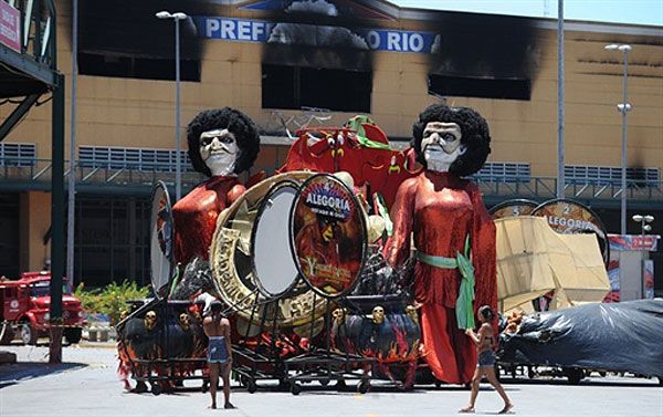 Бразилія, Ріо-де-Жанейро. Члени шкіл самби дивляться на ляльки, пошкоджені в результаті руйнівної пожежі у школі самби Гранде. Учасники карнавалу в Ріо почали відновлювати 8000 костюмів і дев'ять гігантських платформ, які згоріли під час пожежі у майстеренях. Три з 12 шкіл самби втратили більшість костюмів напередодні карнавалу. / © AFP