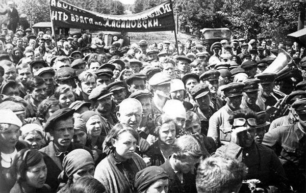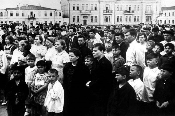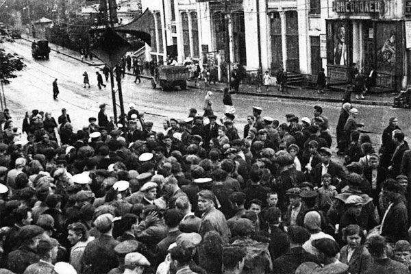 Мешканці Тамбову зібрались на площі Леніна у центрі міста, 22 червня 1941 року.