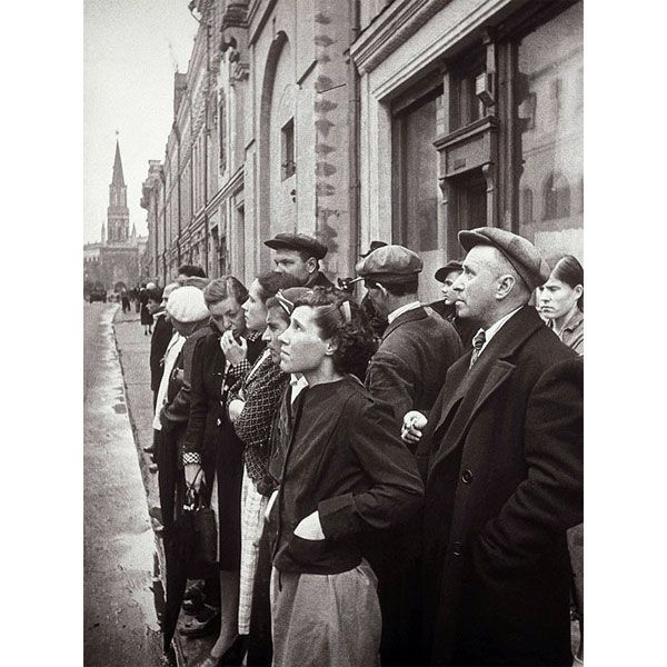 Москвичі слухають по радіо звернення Радянського інформбюро про віроломний напад фашистської Німеччини на СРСР, 22 червня 1941 р. Автор фото: Халдей Є. А.