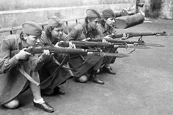 Жінки навчаються стріляти з гвинтівки, Москва, 1941 рік.