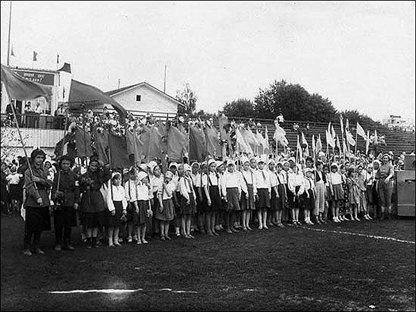 Урочиста шкільна лінійка з нагоди завершення навчального року, Молотов, 22 червня 1941 року.