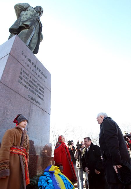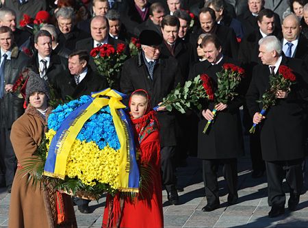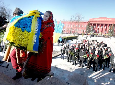 Прем'єр-міністр Микола Азаров взяв участь у церемонії покладання квітів до пам'ятника Тарасу Шевченку в Києві. Разом із прем'єром червоні троянди до пам’ятника Кобзарю поклали міністр МНС Віктор Балога, заступник глави АП Ганна Герман та глава КМДА Олександр Попов.
