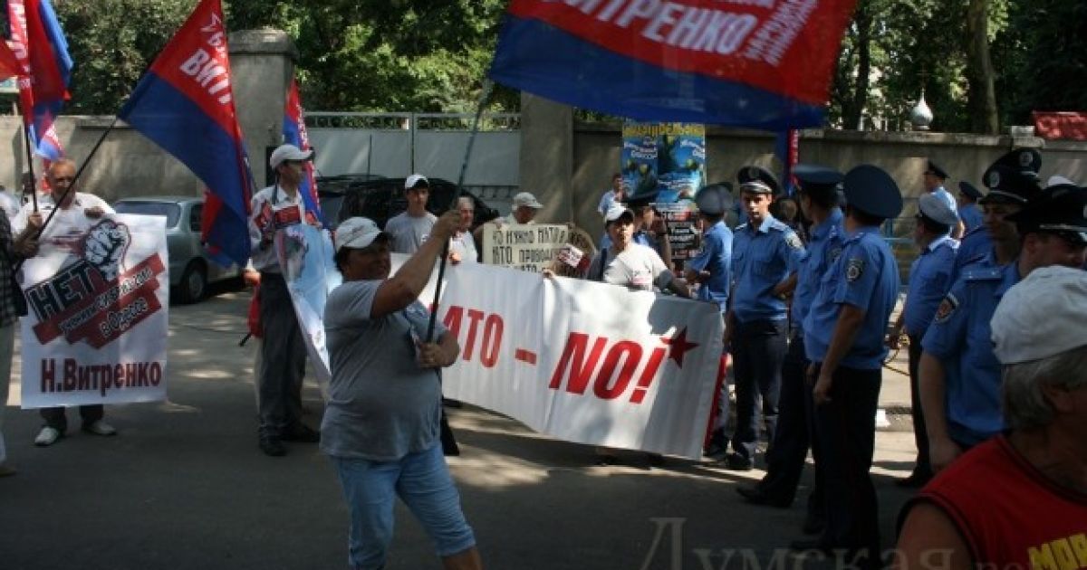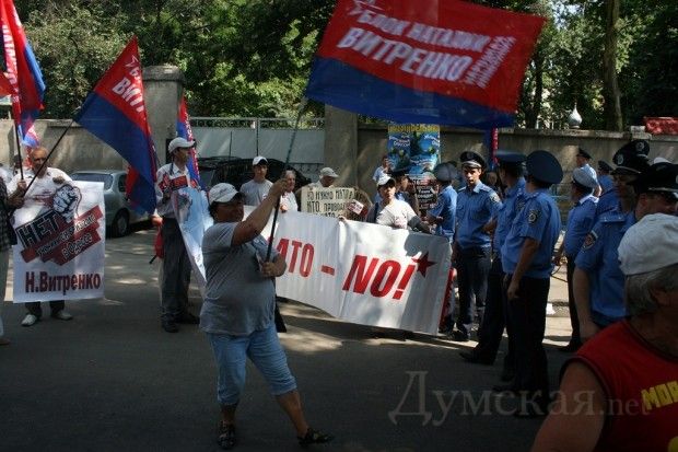 У Одесі в Будинку Офіцерів пройшло урочисте відкриття міжнародних навчань "Сі бриз - 2010". Активісти ПСПУ, лідером якої є Наталя Вітренко, пікетували будівлю.