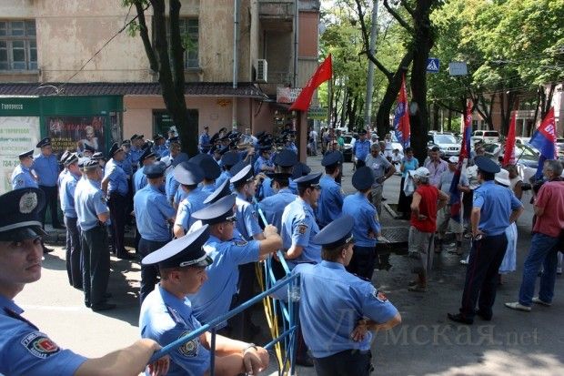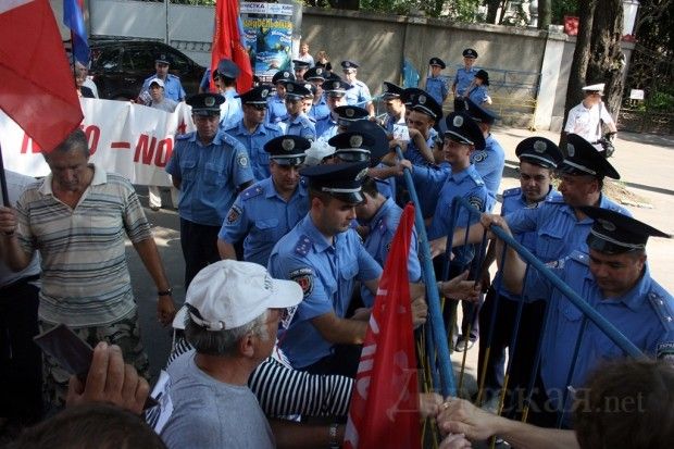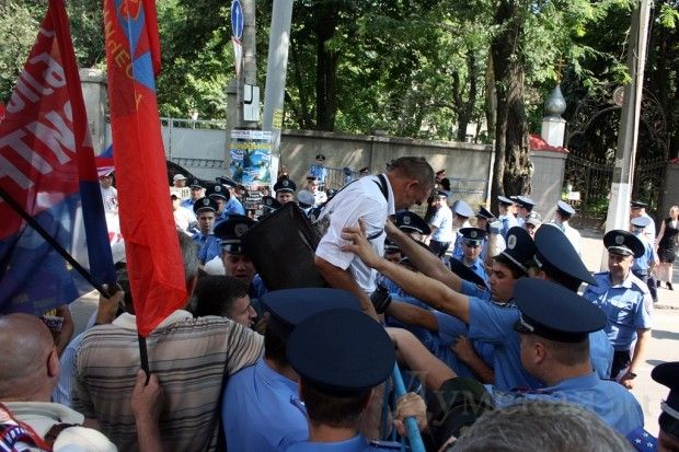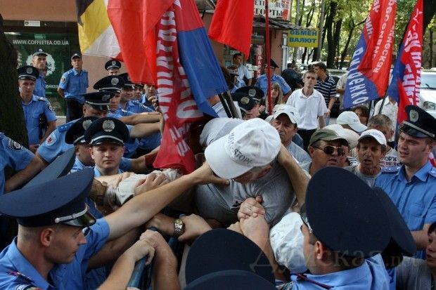 Близько двох десятків представників ПСПУ спробували прорвати міліційне оточення... / © Думская.net