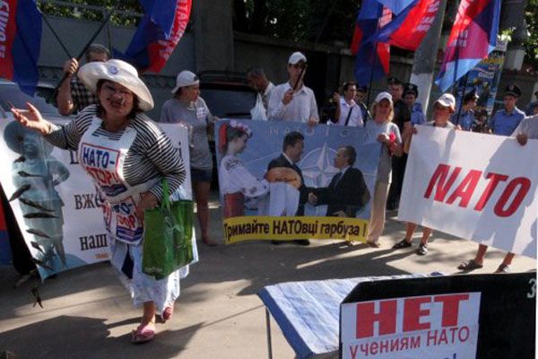 На знак протесту проти проведення навчань та проти вступу України до НАТО прибічники ПСПУ провели акцію протесту / © УНІАН