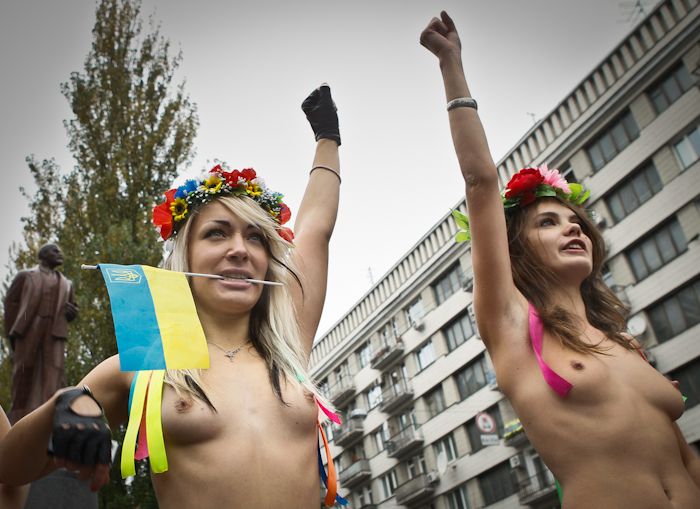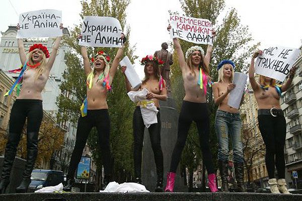 Активістки жіночого руху FEMEN влаштували біля пам’ятника Леніну в центрі Києва топлес-акцію "Україна - не Аліна". Оголені учасниці акції висловили протест проти візиту до України прем'єр-міністра Росії Володимира Путіна.