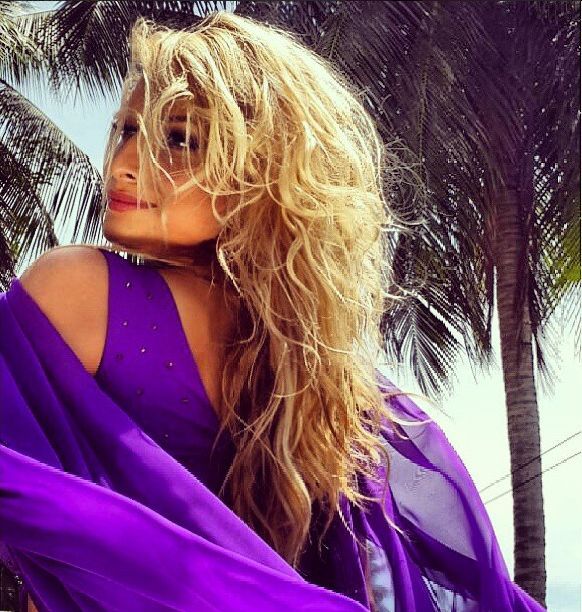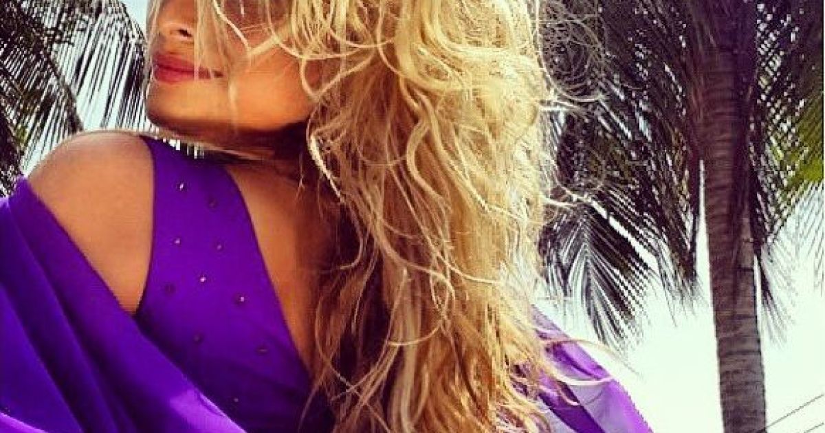Співачка позувала у фіолетовому танкіні, вихиляючи сідницями у плавках-танга перед камерою. Топ купальника був рясно оздоблений бісером, а на руках красуні були золоті браслети. На деяких світлинах Котова кокетувала фіолетовим парео, в тон купальника.