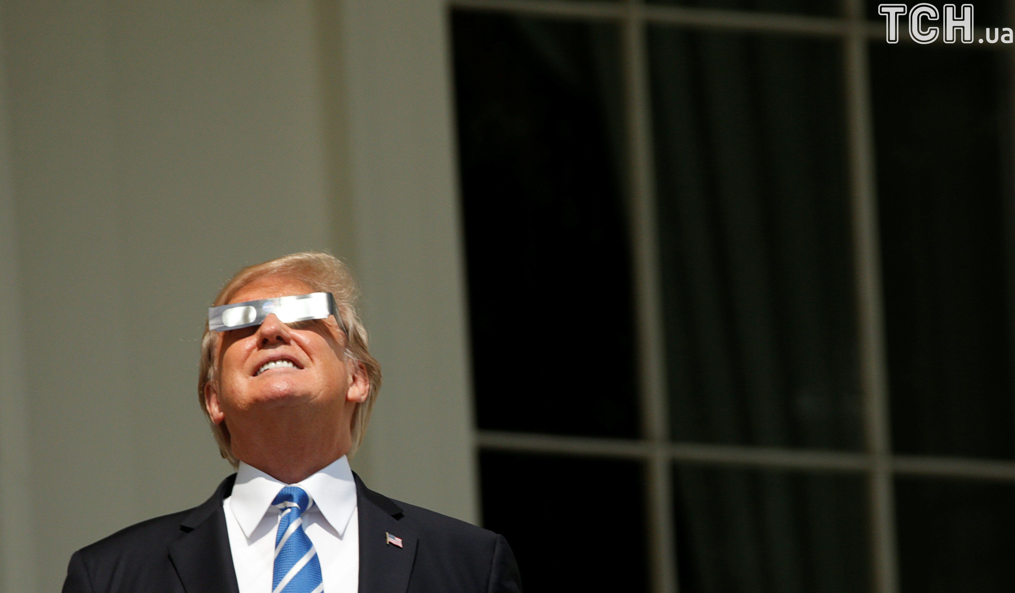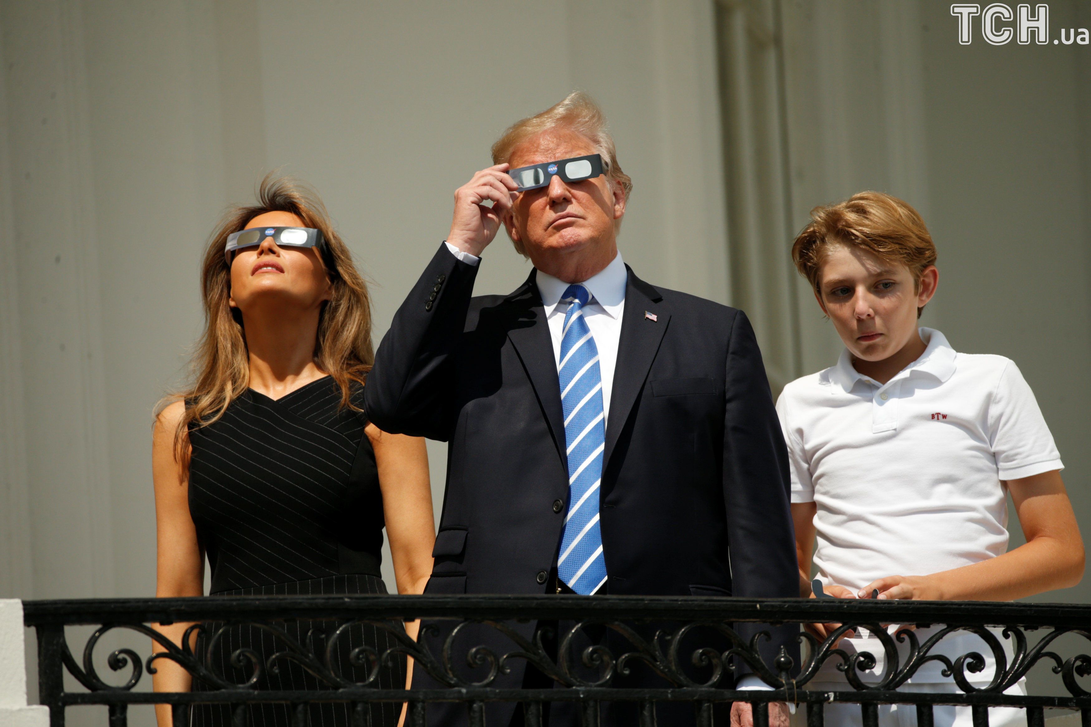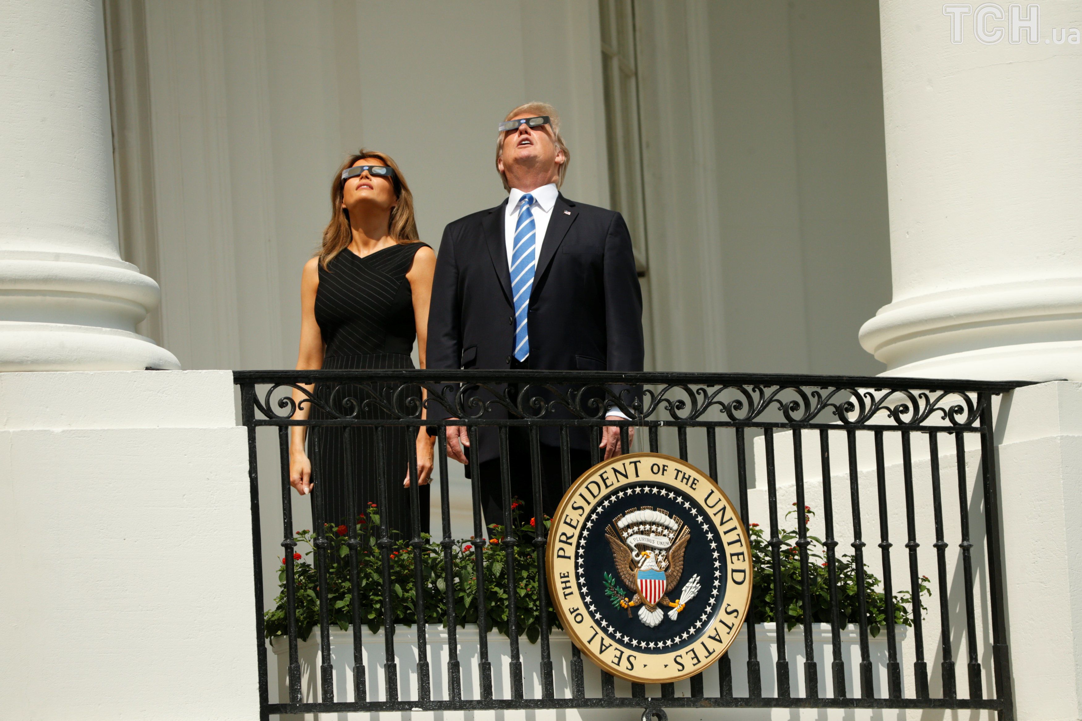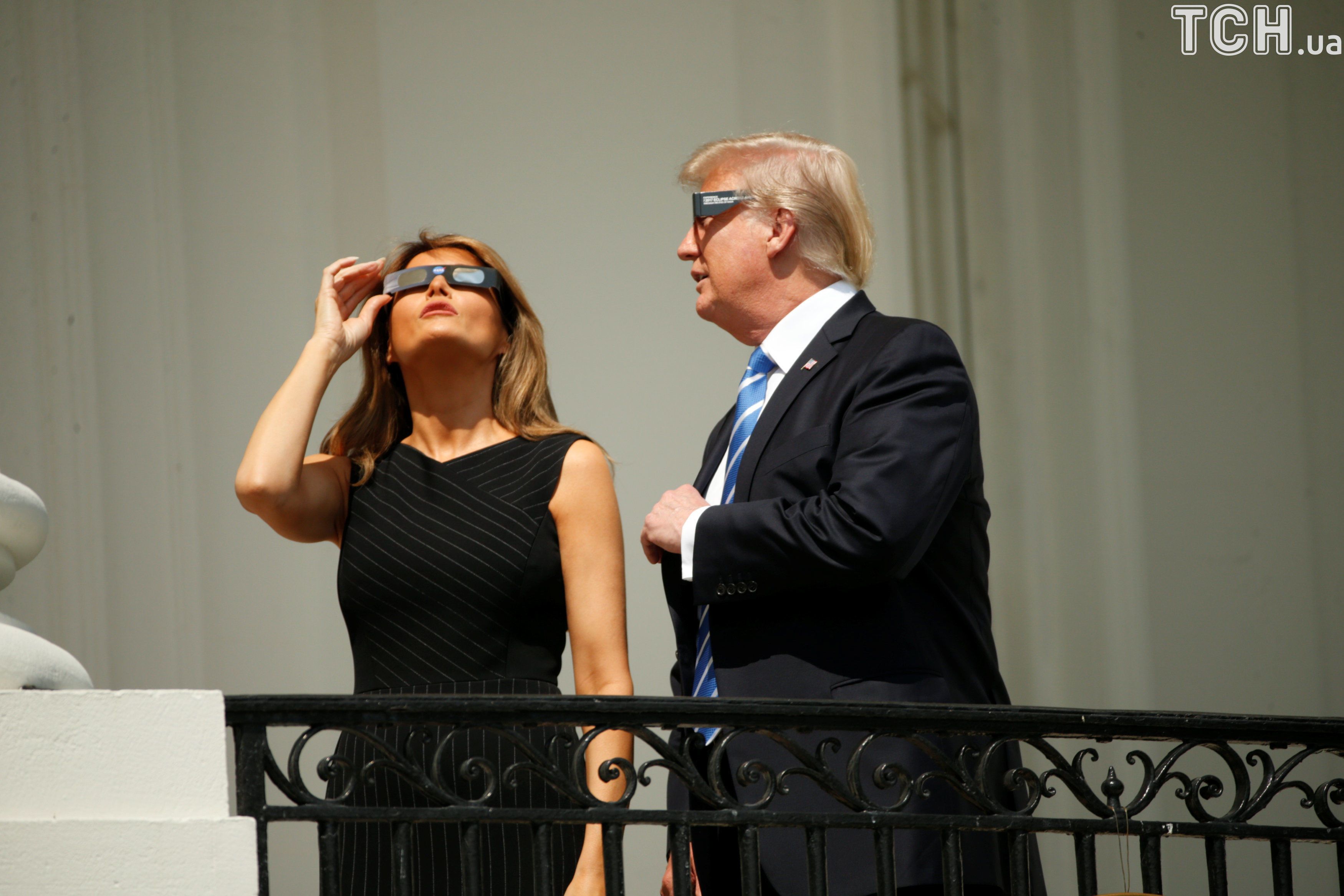 Американський президент традиційно емоційно спостерігав за астрономічним видовищем, а його дружина у елегантній сукні кілька разів намагалася дивитися на затемнення навіть без захисних окулярів.