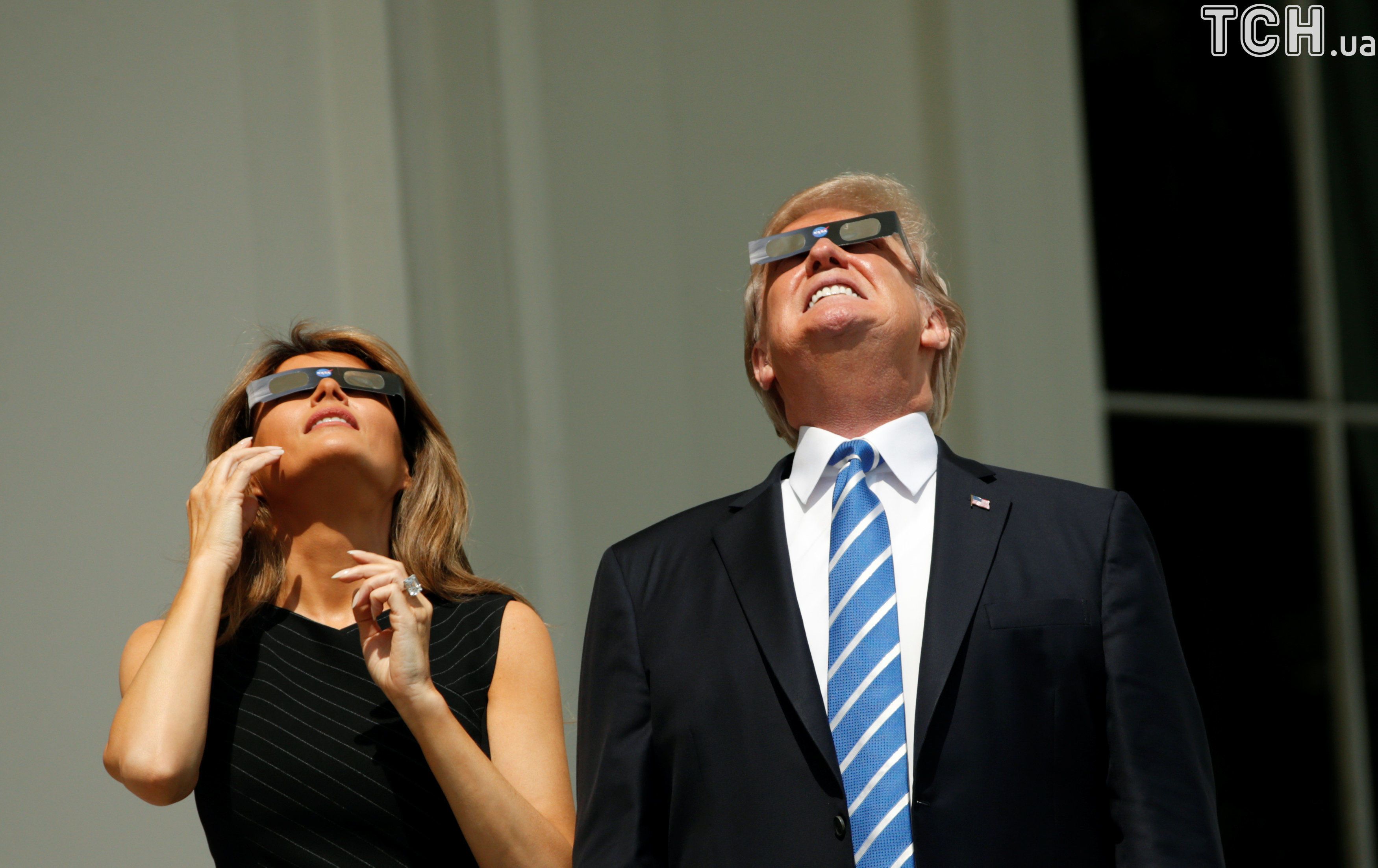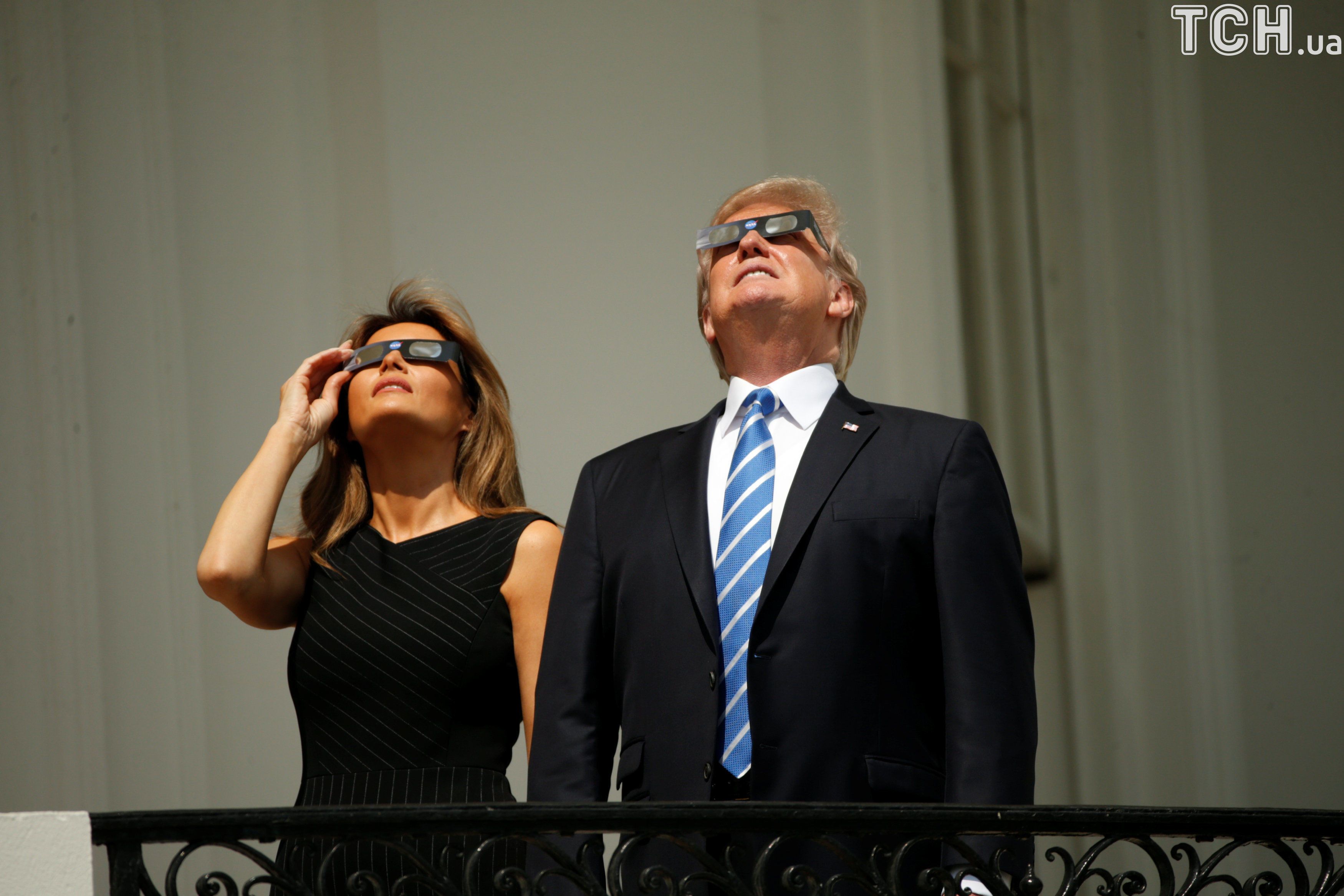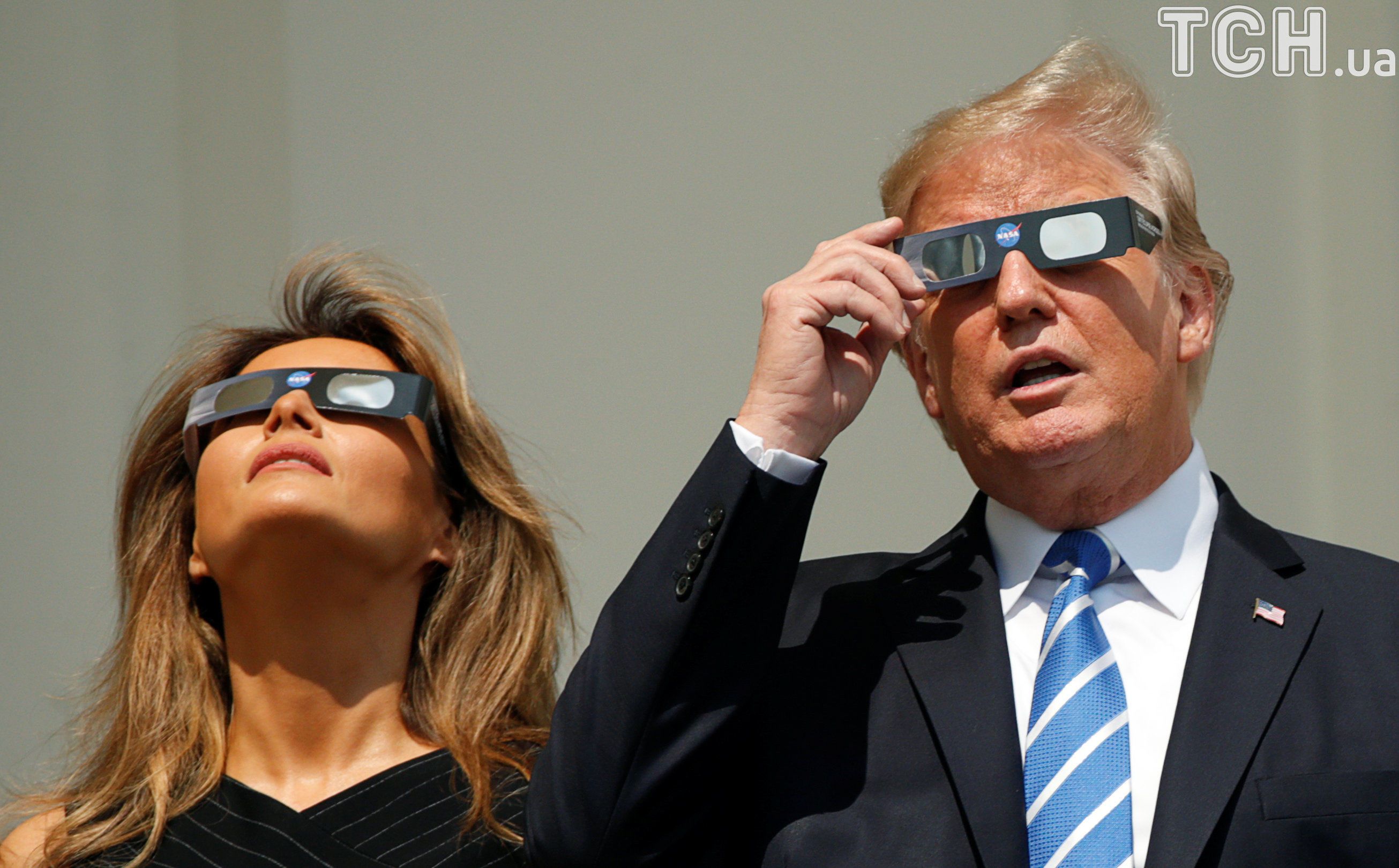 Емоційний Трамп та елегантна Меланія: як президентське подружжя за сонячним затемненням спостерігало
