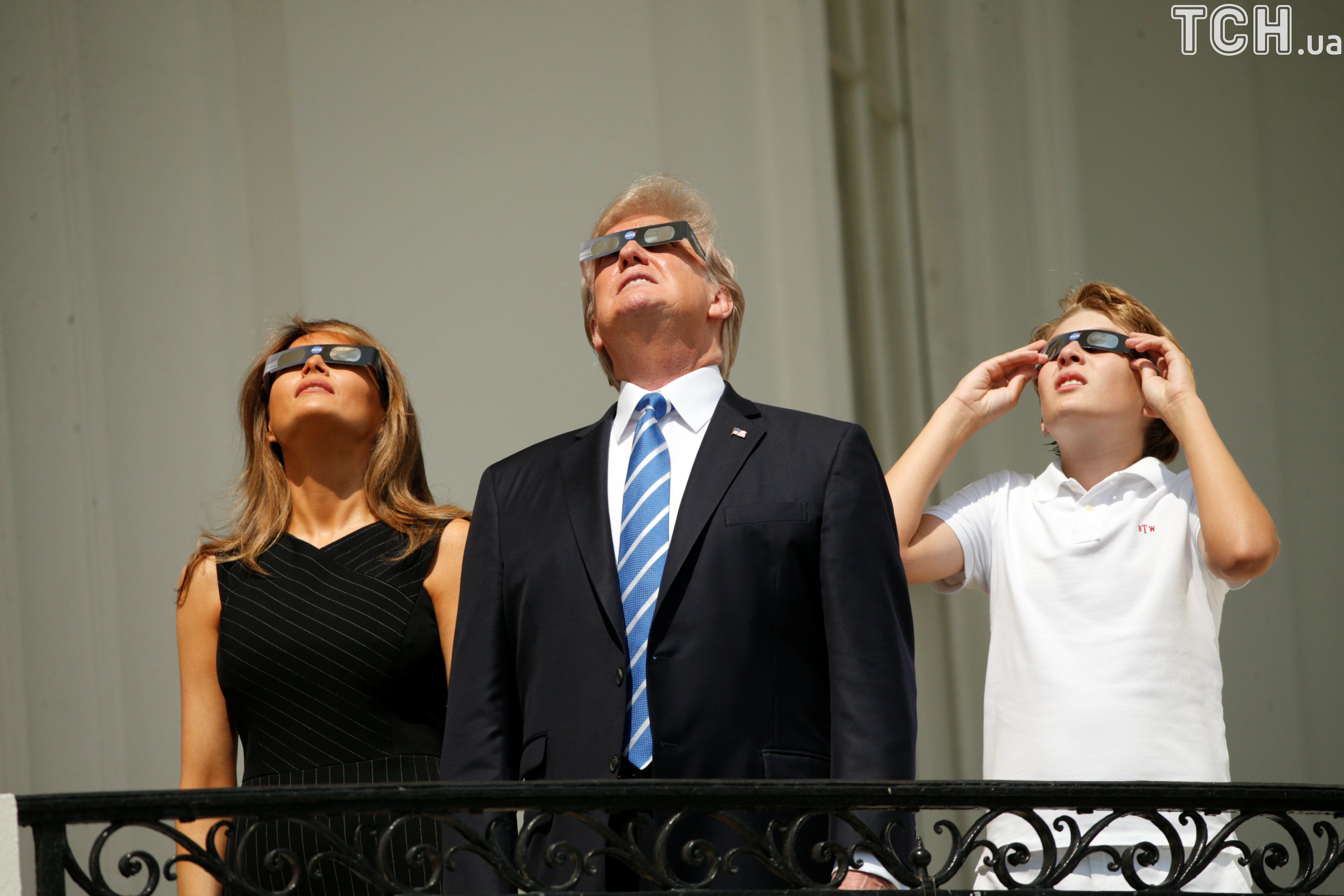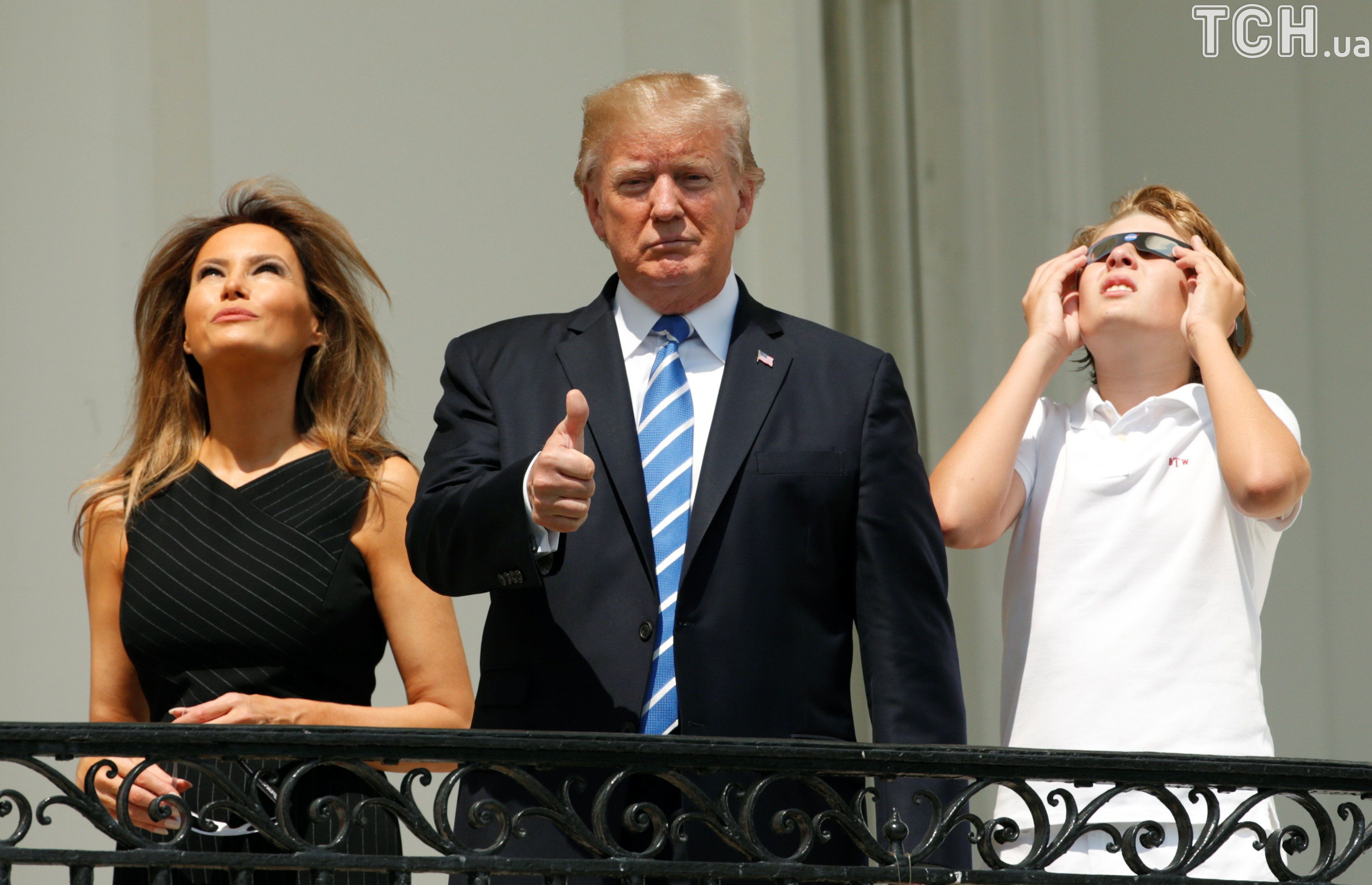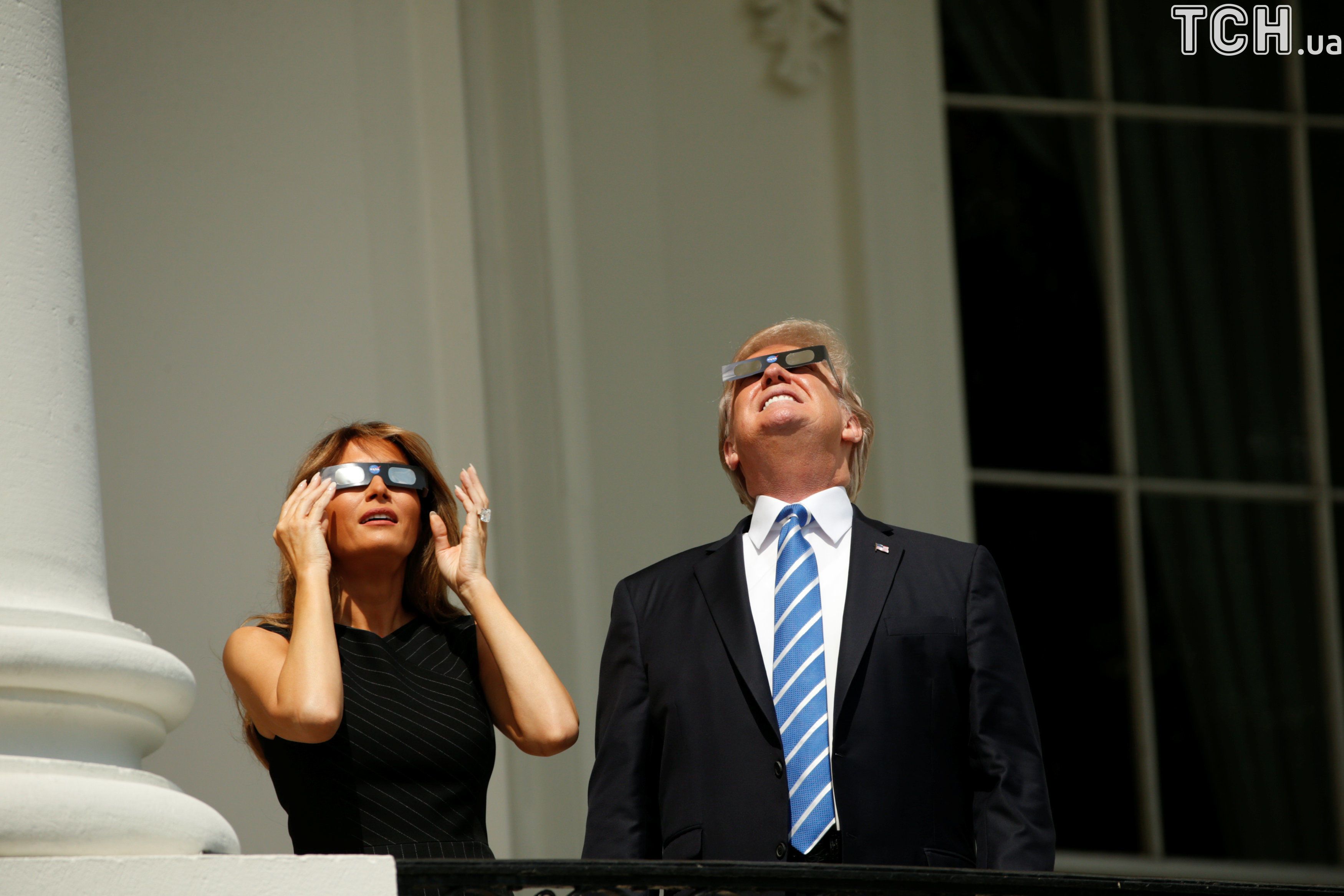 Емоційний Трамп та елегантна Меланія: як президентське подружжя за сонячним затемненням спостерігало