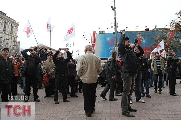 Активістки жіночого руху FEMEN влаштували на Хрещатику топлес-протест проти Юлії Тимошенко та Віктора Януковича "Ю і Я — одна уйня!"