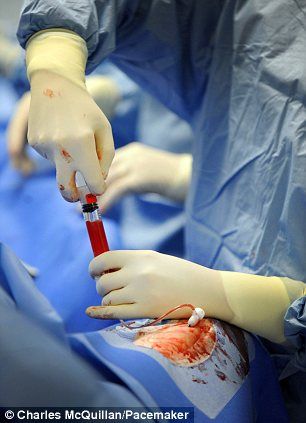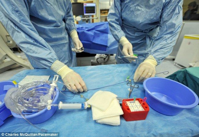 Між камерами фотограф перемикався за допомогою пульта дистанційного керування, а третю камеру він тримав над своєю головою протягом півтори години, поки тривало стентування. / © swns.com