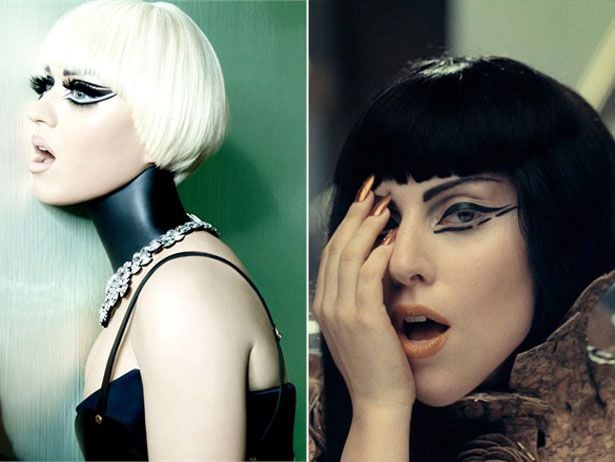 Завжди яскрава Кеті Перрі радикально змінила імідж і стала "косити" під Lady Gaga. Склалося враження, що видавці журналу Vogue, для яких і була створена фотосесія, запропонували своїм читачам гру – знайди 10 відмінностей.