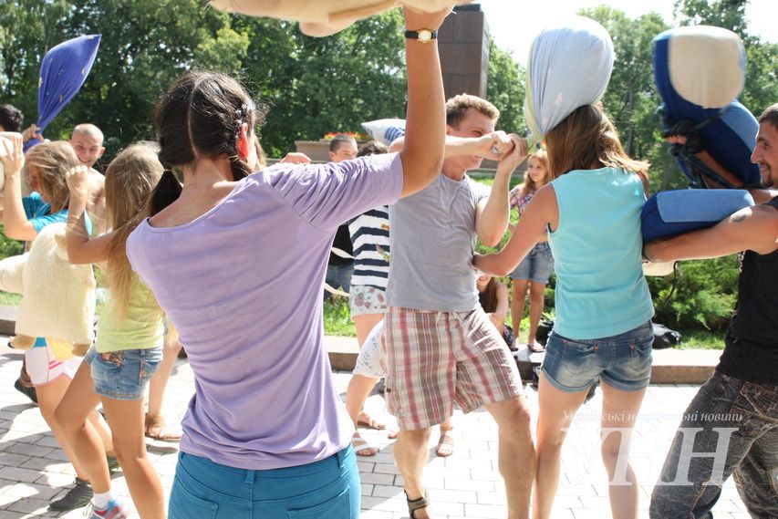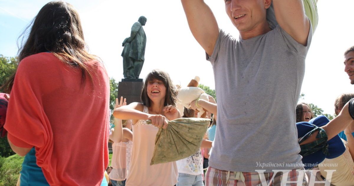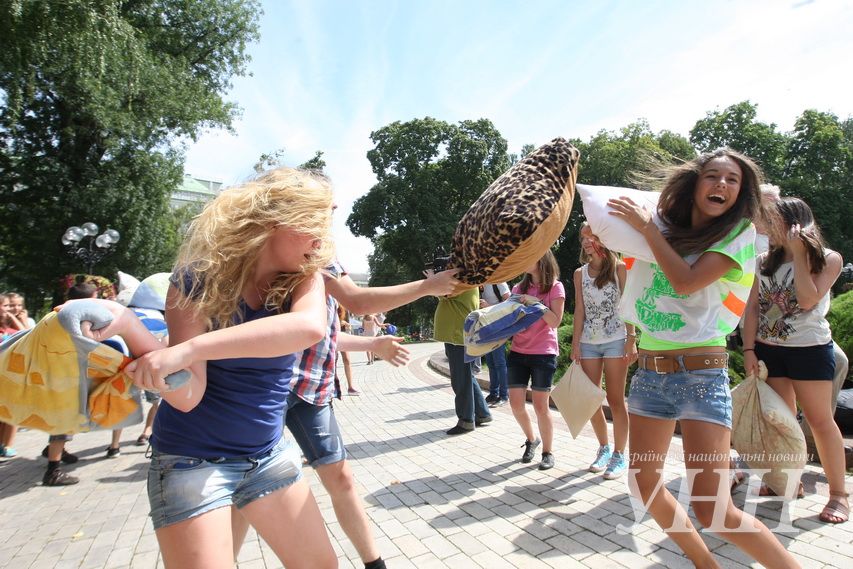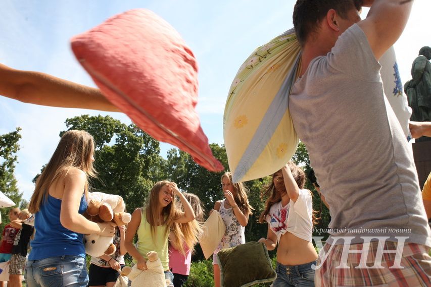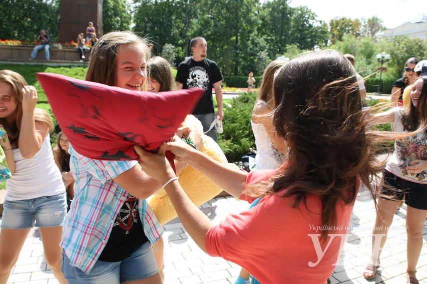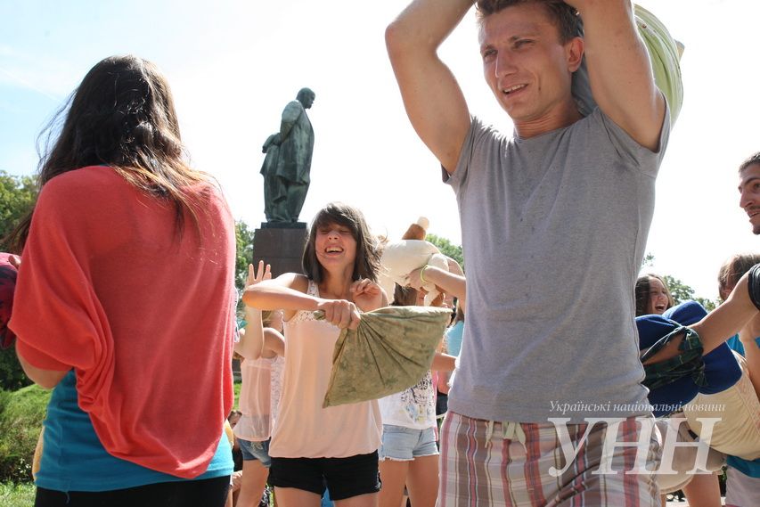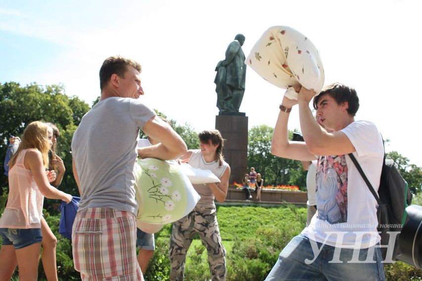 Сьогодні, 31 липня, в Київі у парку ім.Шевченка відбувся флешмоб, під час якого учасники билися подушками, пише УНН .