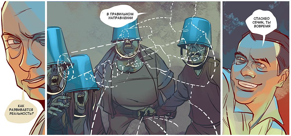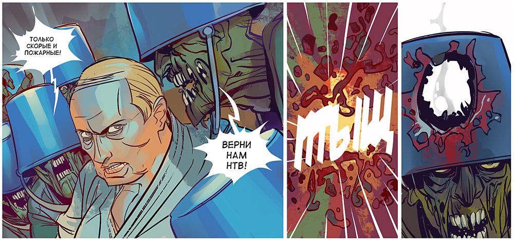 В Інтернеті з'явилася перша серія коміксів, присвячена російському прем'єру Володимиру Путіну - він бореться із "синіми відерками", які погрожують з'їсти його мозок.