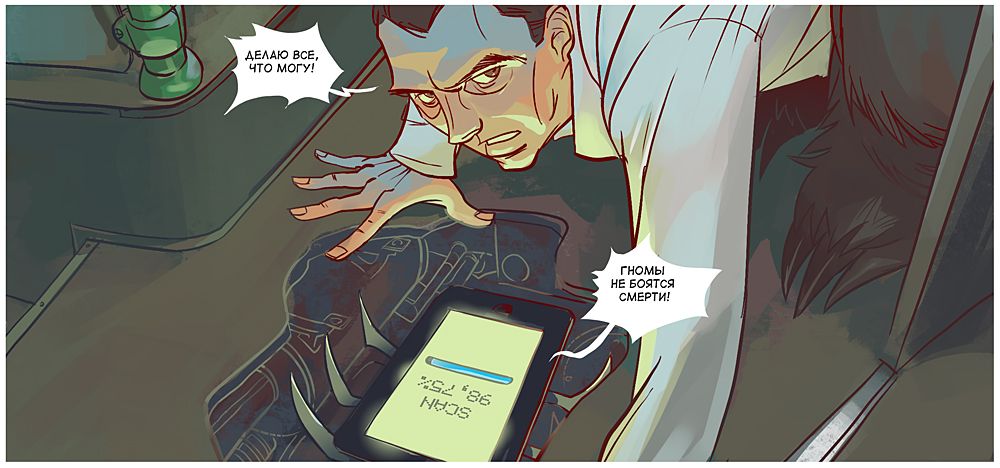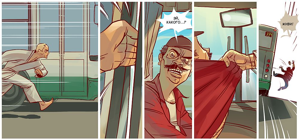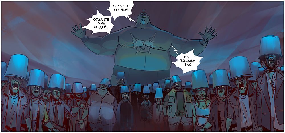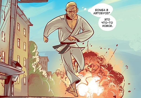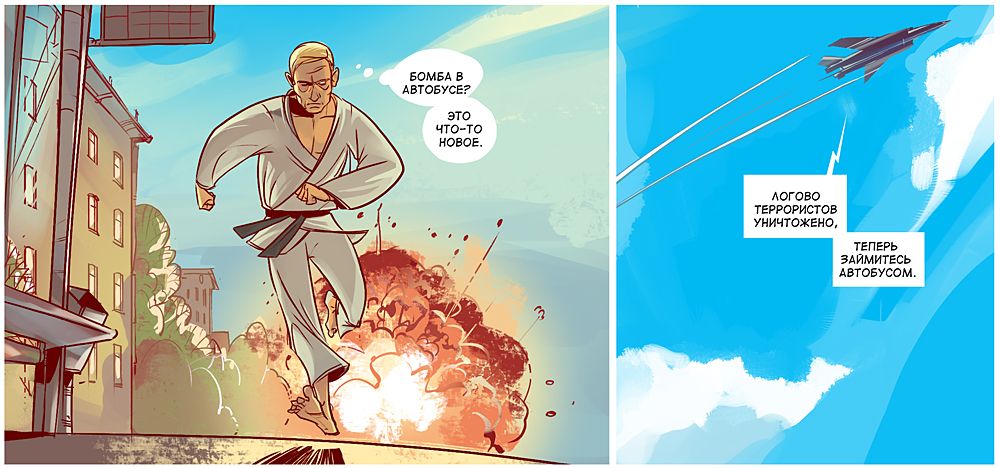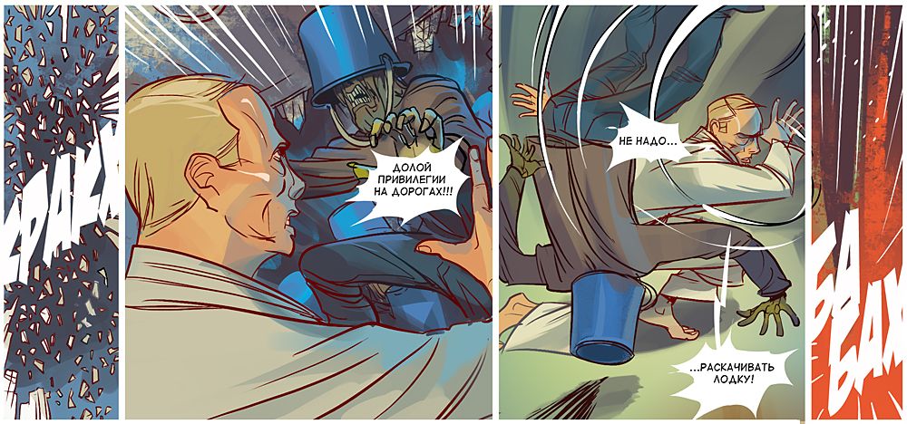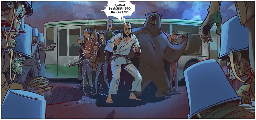 У боротьбі героям допомагає супер-гаджет Медведєва, замаскований під iPad, і "повністю божевільний" Сєчін, який "інтуїтивно весь час зливається з місцевістю". Закінчується комікс сутичкою на татамі Людини-як-всі і Товстого Троля, схожого на японського сумоїста.