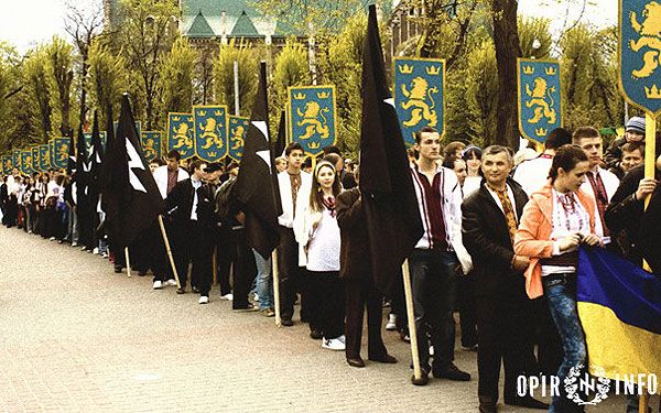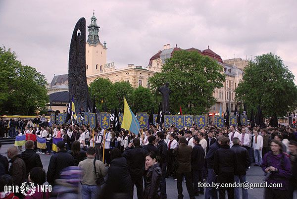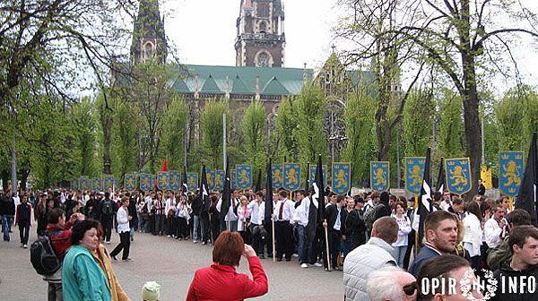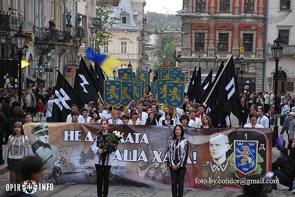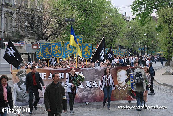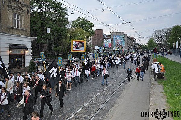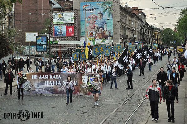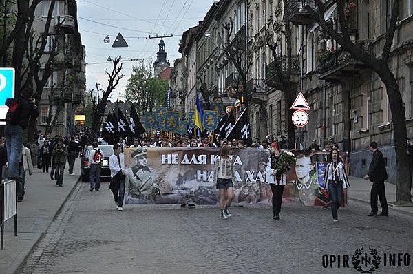 Близько двох тисяч молодих націоналістів пройшлись Львовом, в руках вони несли прапори, на щитах – золотих дивізійних левів – символіку воїнів "Галичини", а також величезний банер "Не для ката – наша хата", молоді люди у вишиванках крокували вулицями Львова, скандуючи "Слава Україні!", "Слава нації!", "Україна – понад усе".