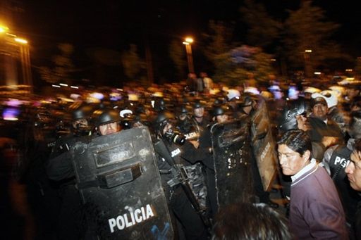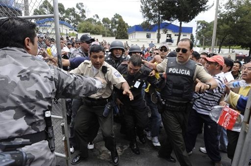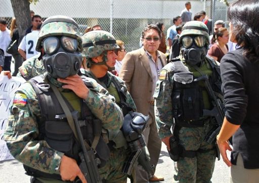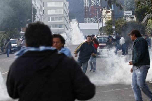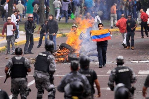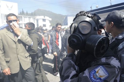 Президент Еквадору Рафаель Корреа постраждав від гранат зі сльозогінним газом, які були кинуті поліцейськими під час масової акції протесту в Кіто, коли близько 800 людей захопили центральну поліцейську казарму.