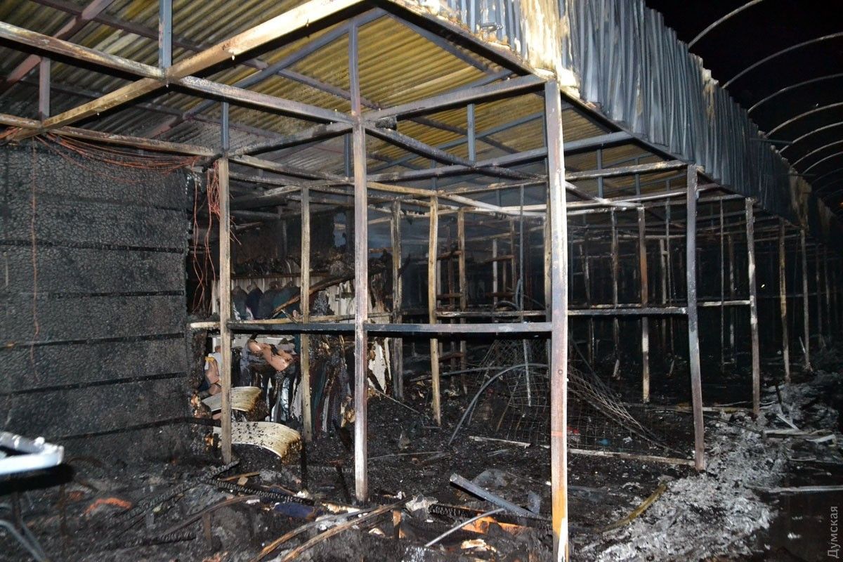 Вигоріло близько 700 квадратних метрів павільйонів: повністю три торгові ряди, а четвертий - частково. Про це пише "Думская". За словами підприємців, пожежа сталася через коротке замикання в одному з торгових павільйонів. Правда, де саме було джерело, ніхто не знає точно. У той же час торговці стверджують, що вдалося б уникнути таких масштабних наслідків, якби великі вогнегасники були в робочому стані.