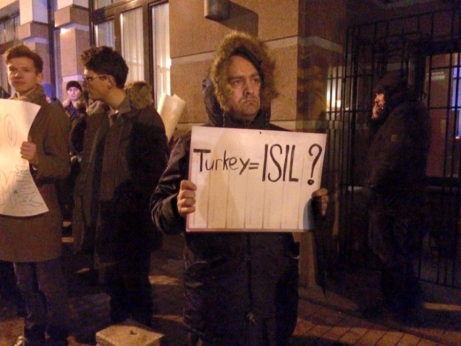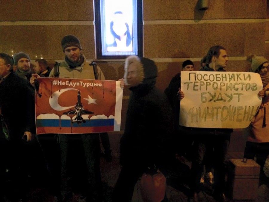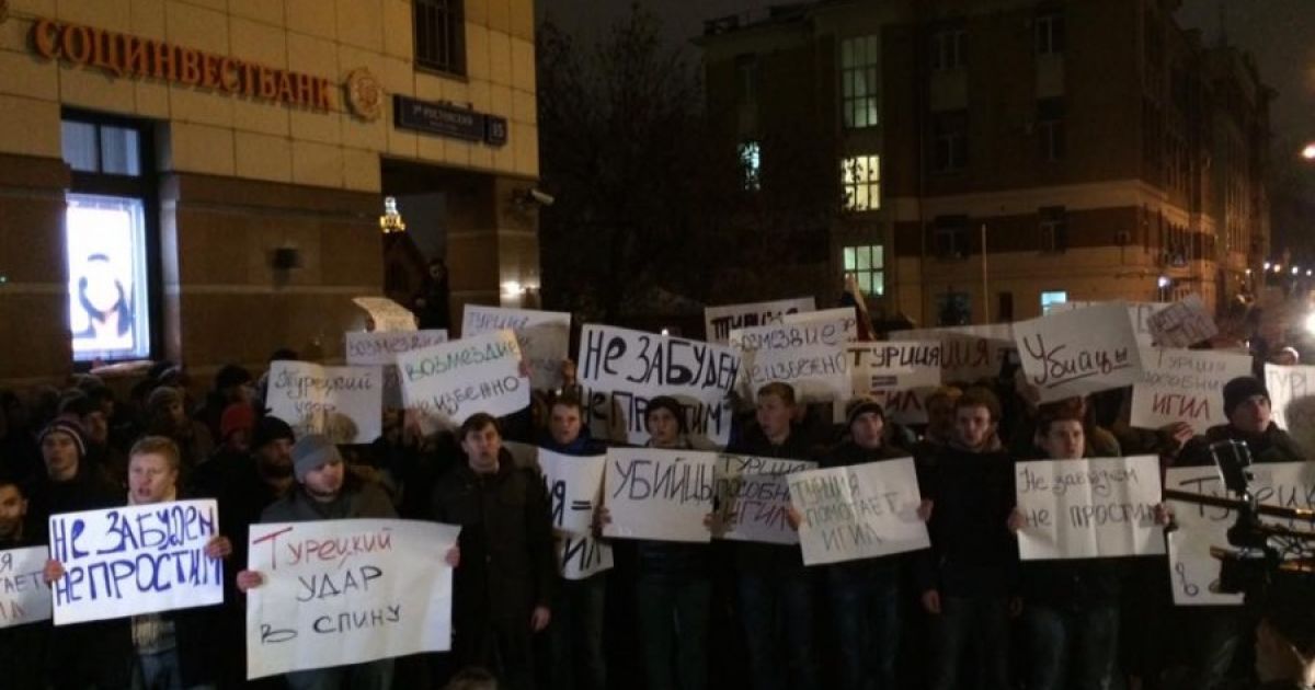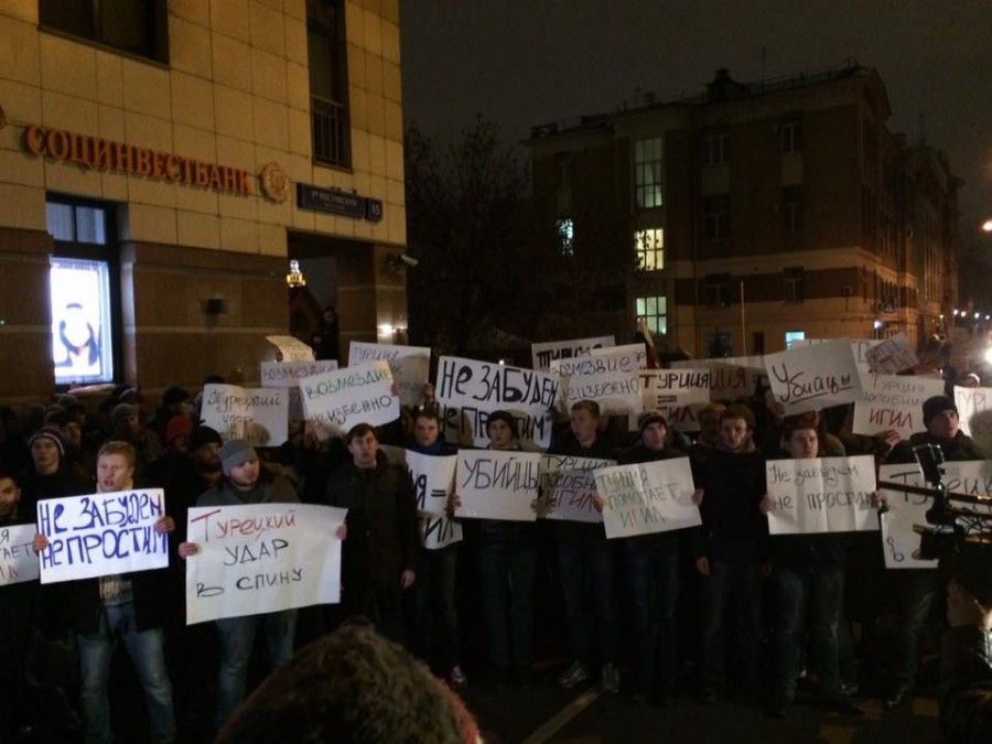 Біля посольства Туреччини в Москві близько 150-200 чоловік вийшли на акцію протесту у зв'язку з атакою на російський літак Су-24, повідомляє Дождь.