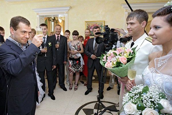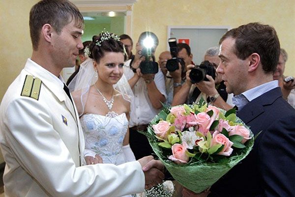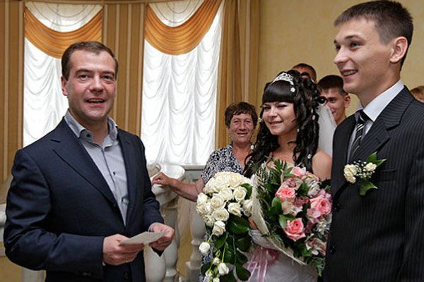 Президент Росії Дмитро Мєдвєдєв відвідав Біробіджан з робочим візитом. У ході свого візиту Дмитро Мєдвєдєв став свідком на трьох весіллях, коли побував у місцевому Палаці одружень, і подарував молодятам по квартирі.