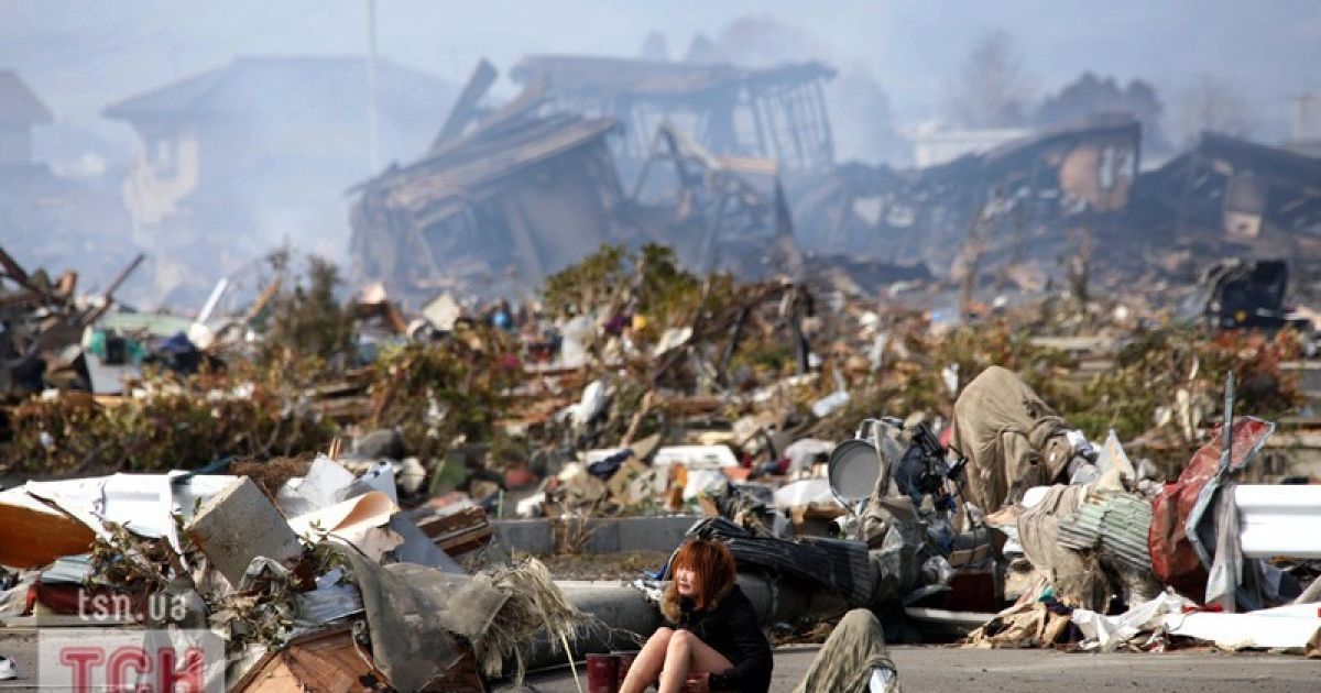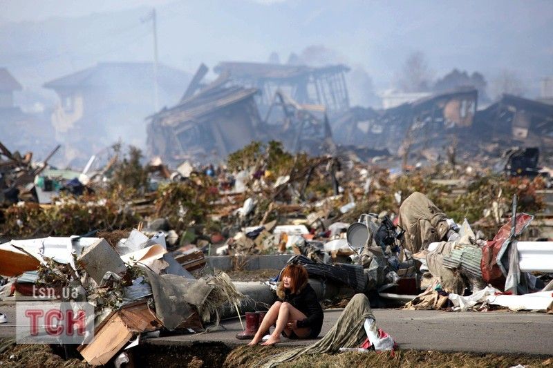 Японка на місці зруйнованих будівель піля цунамі / © Фото EPA/UPG