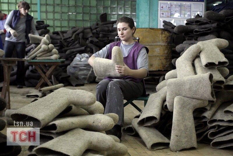 Жінка працює на виробництві валенків у Білорусі / © Фото EPA/UPG