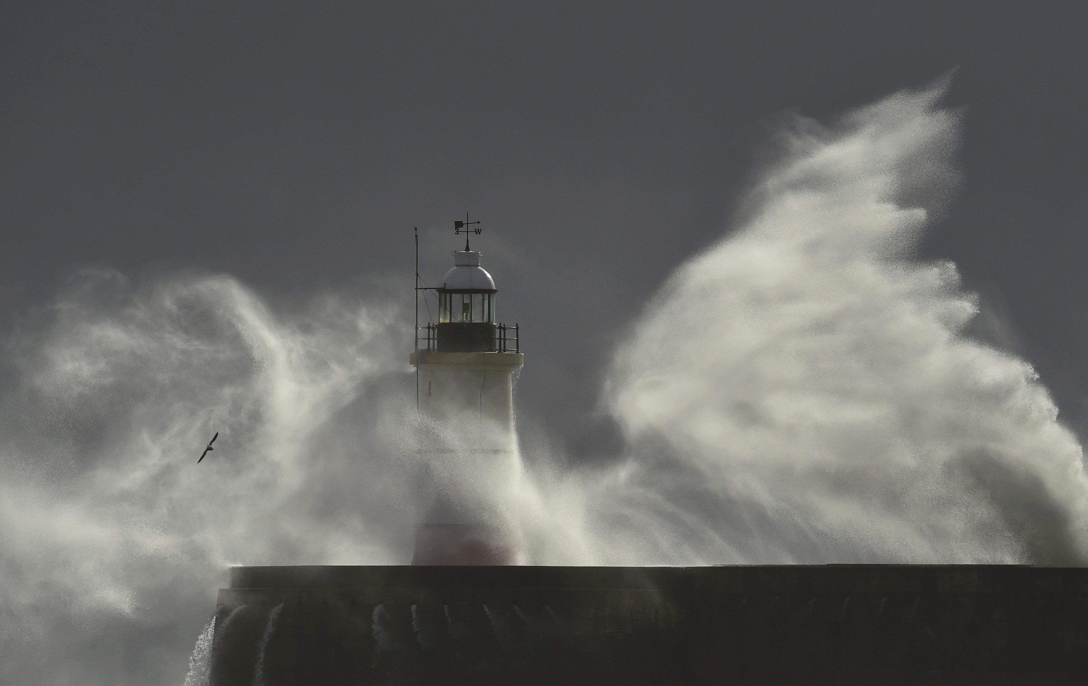 Хвилі і сильний вітер вдаряють по морській стіні та маяку у Ньюхейвені на півдні Англії. / © Reuters