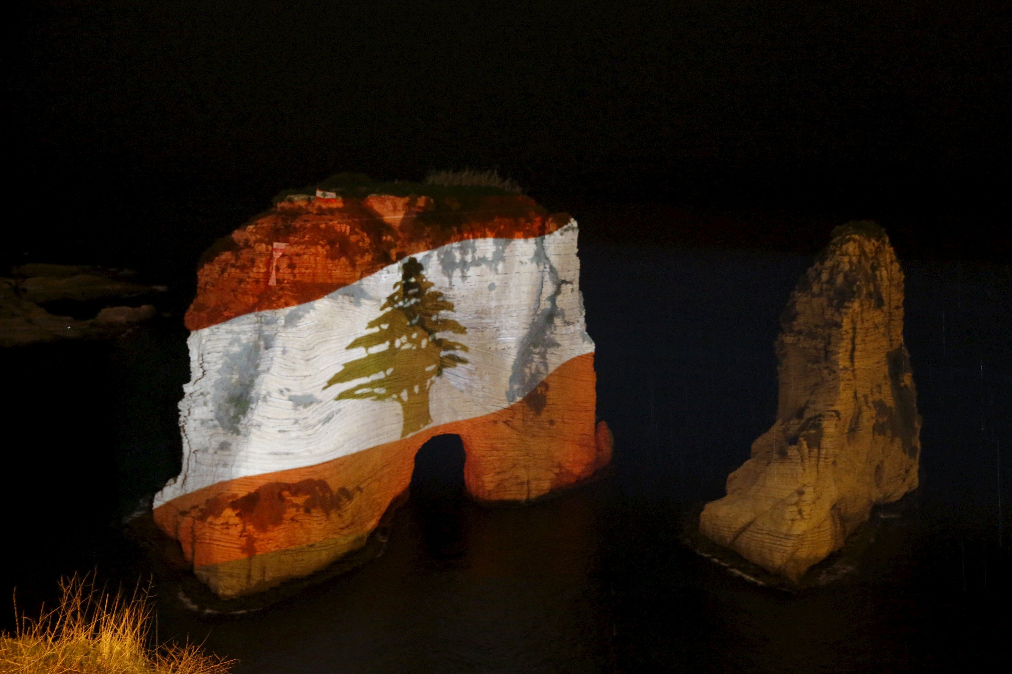 На скелі Голуб світиться ліванський прапор на честь жертв терактів у південному передмісті Бейрута в Лівані. Вибухи, організовані терористами “ІД”, забрали життя щонайменше 45 людей, покалічили мінімум 180. / © Reuters