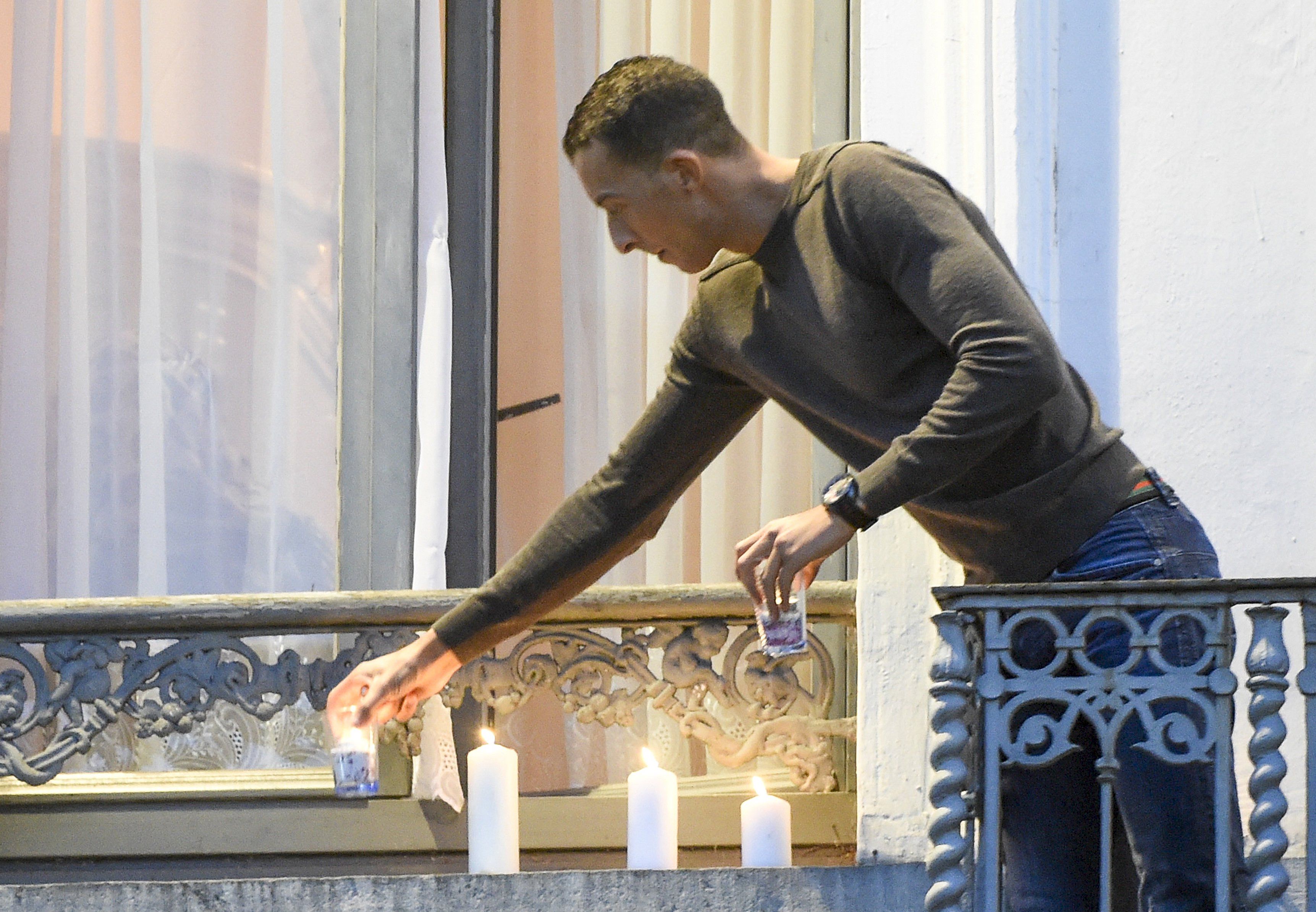 Мохамед Абдеслам, брат паризьких терористів Ібрагіма та Салаха Абдеслам, ставить свічки на балконі свого будинку в Брюсселі, щоб вшанувати пам'ять жертв недавніх смертельних атак. Теракти у столиці Франції забрали життя 129 людей. / © Reuters