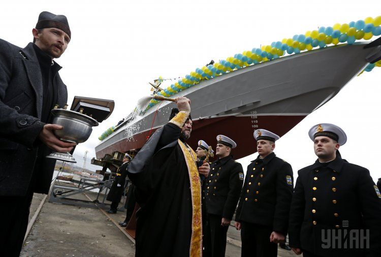 Церемонія урочистого спуску на воду малого броньованого артилерійського катера "Гюрза-М" у Києві. В Україні побудовано малий броньований артилерійський катер, який відповідає стандартам НАТО. / © УНІАН