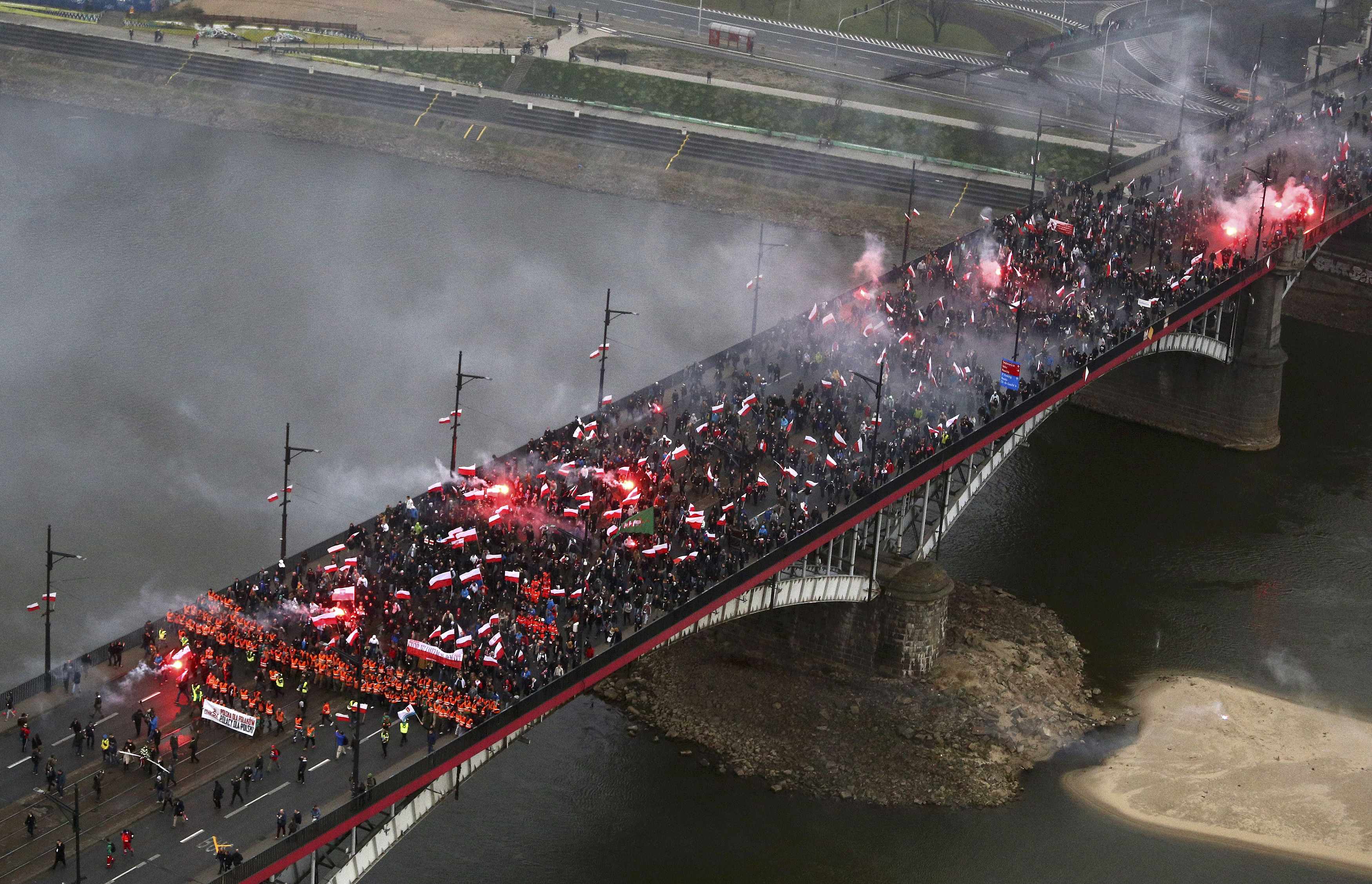 Вид з повітря на активістів, що беруть участь в демонстрації у Варшаві, Польща. 11 листопада націоналістичні групи, які вважають, що традиційні польські цінності знаходяться під загрозою, провели марш до дня незалежності Польщі. / © Reuters