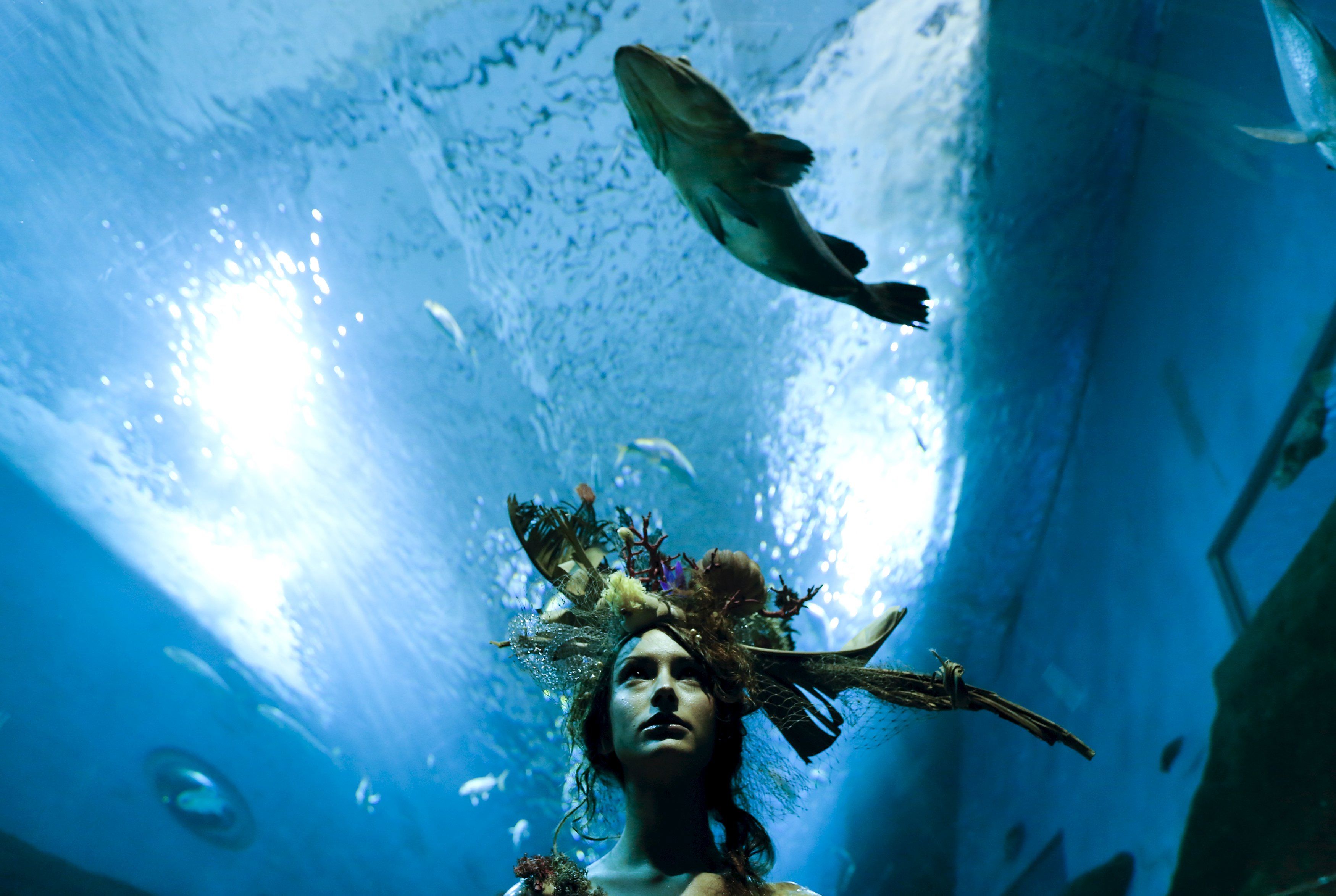 Модель носить витвір дизайнера Луїса Бенітеса під час зйомок в акваріумі на заході Мода Андалусії у Севільї, на півдні Іспанії. / © Reuters