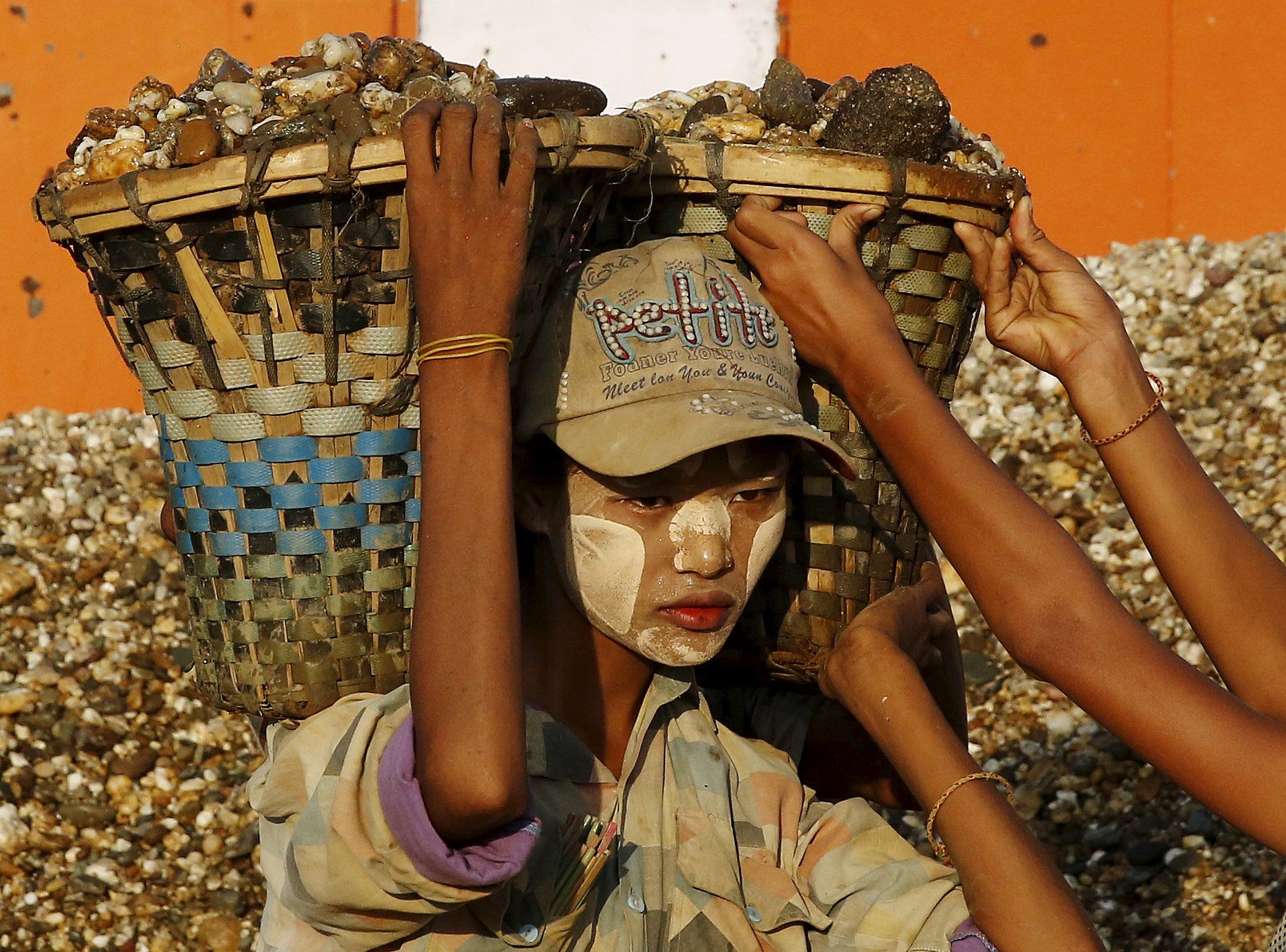 Працівники розвантажують гравій з човна на стоянці в селищі Дала, біля міста Янгон, М'янма. / © Reuters