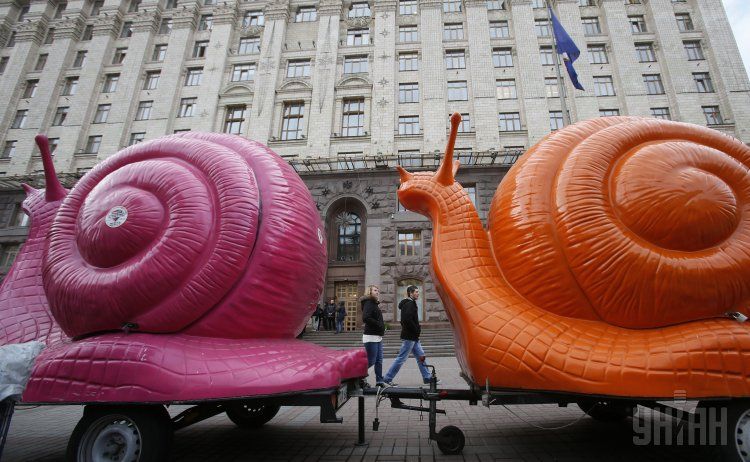 Акція протесту власників мобільних кавомобілей біля будівлі КМДА у Києві. / © УНІАН