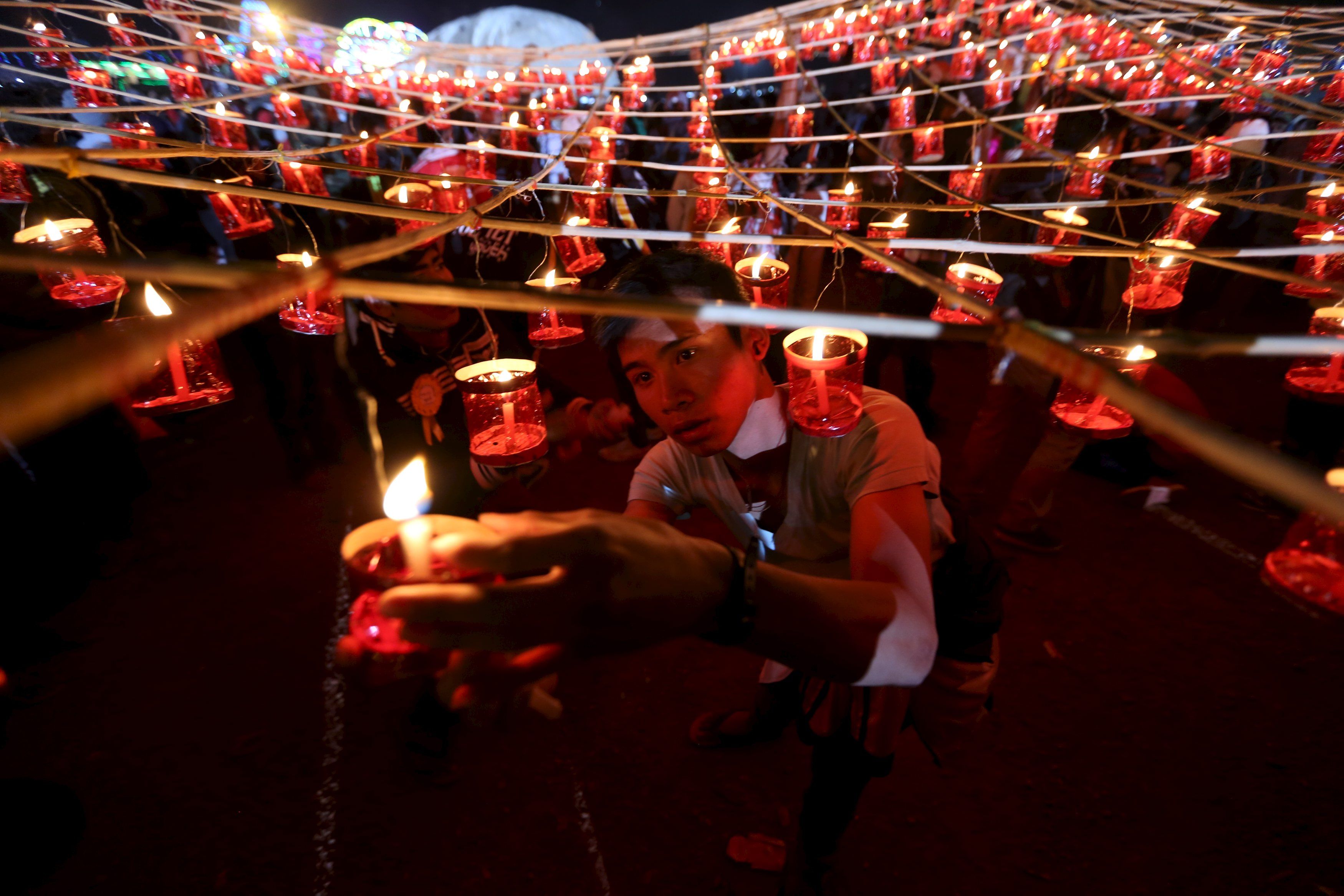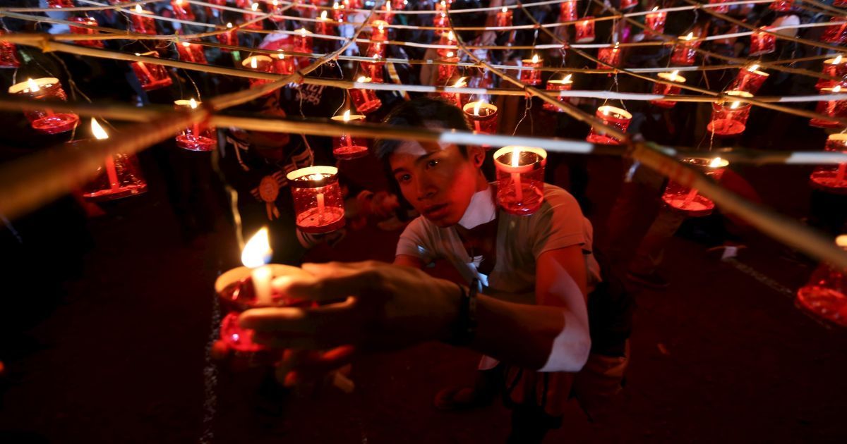 Люди запалюють свічки перед запуском традиційних домашніх паперових повітряних куль у небо під час щорічного фестивалю Тазаунгдаінг у М'янмі. / © Reuters