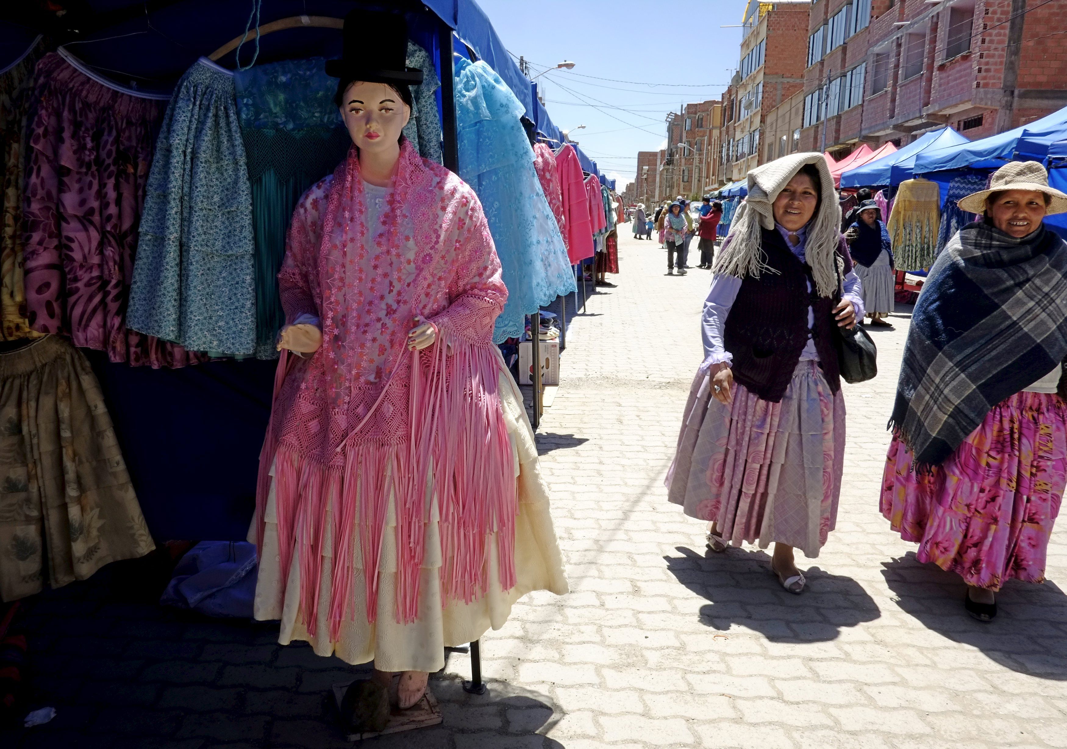 Жінки індіанського племені Аймара йдуть на ярмарку в болівійському Ель-Альто у своєму традиційному одязі. На цьому ярмарку ремісники демонструють одяг, зроблений спеціально для жінок цього племені, яких тут нахивають "cholitas" (“холітас”). / © Reuters