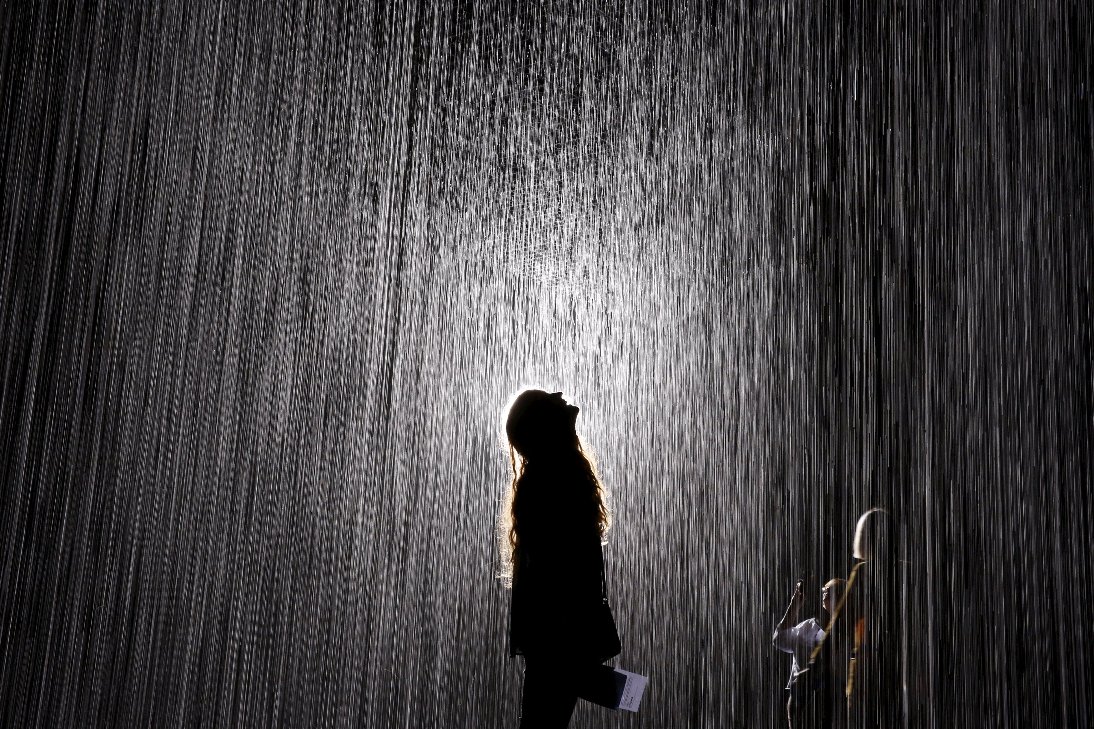 Люди ходять через Кімнату Дощу у Музеї мистецтв округу Лос-Анджелес. Арт-інсталяція була створена лондонськими митцями і використовує 528 літрів води. / © Reuters