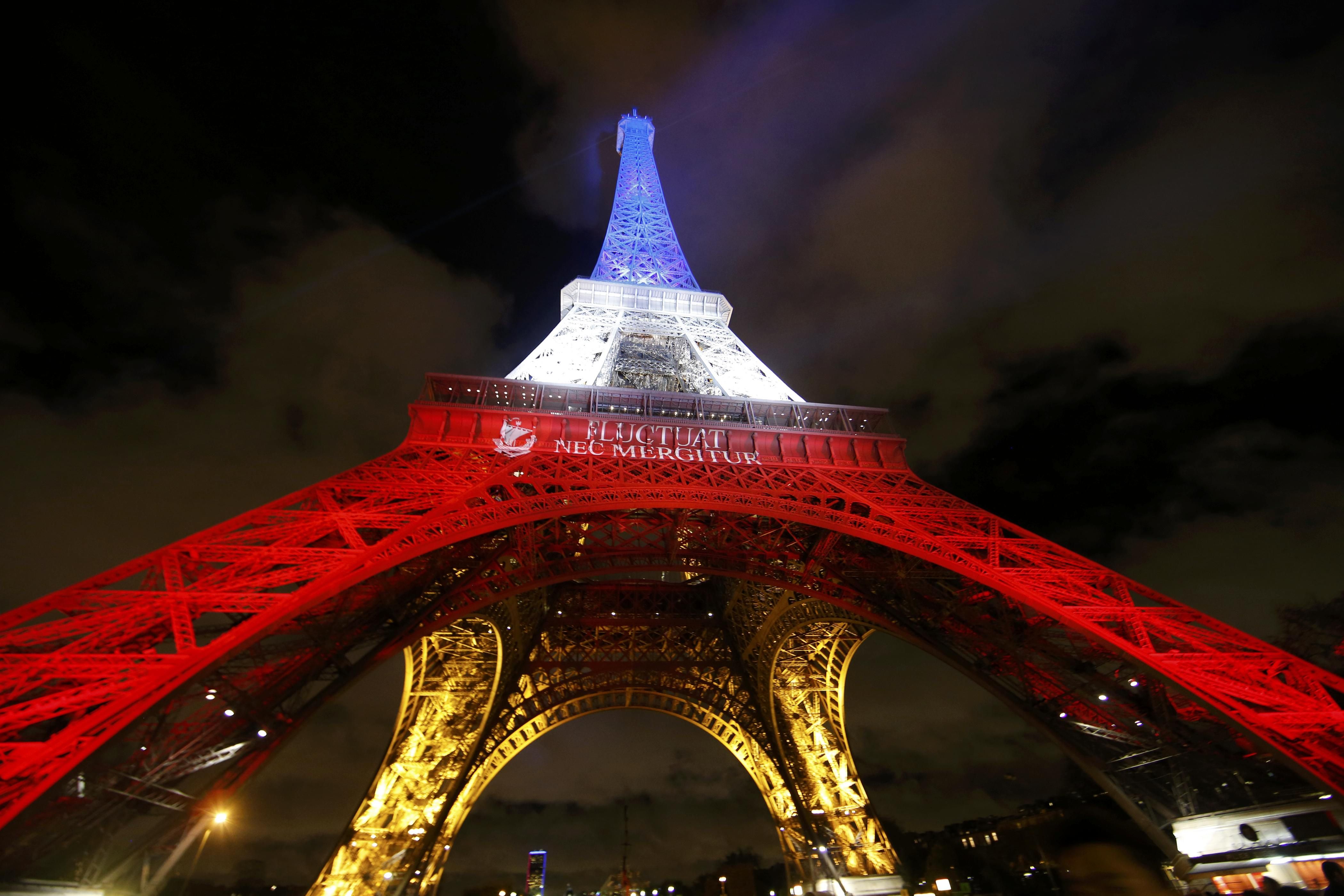 Ейфелева вежа горить блакитним, білим і червоним кольорами французького прапора в Парижі, щоб віддати належне жертвам серії смертоносних нападів в п'ятницю в столиці Франції. / © Reuters