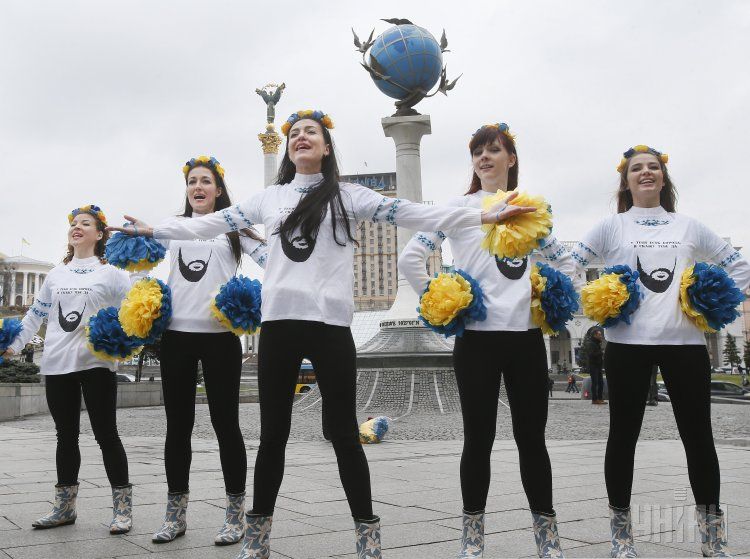 Перформанс-акція "Якщо буде борода, я скажу тобі - ДА" на Майдані Незалежності в Києві. Жінки закликали політиків бути більш стильними. / © УНІАН