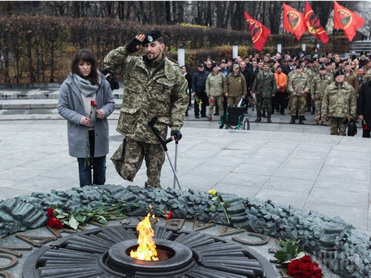 Покладання квітів до могили Невідомого солдата з нагоди Дня морської піхоти України у парку Вічної Слави у Києві. 16 листопада в Україні святкують День морської піхоти. / © УНІАН
