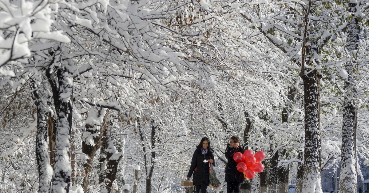 Фотограф зняв, як жінки ходять по засніженій алеї в Алмати, Казахстан. / © Reuters