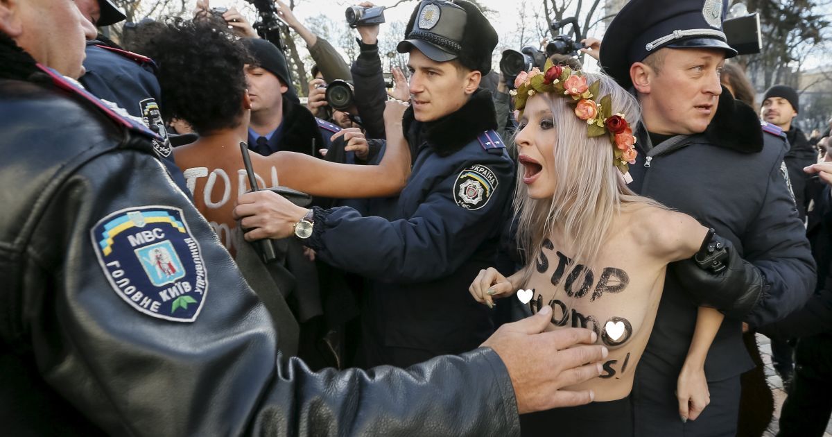 Дівчата із гаслом "Стоп, гомофоб!" зняли з себе одяг перед входом до парламенту. Згодом їх оточили правоохоронці. Патрульні полісмени також прибули на місце інциденту та затримали оголених дівчат.